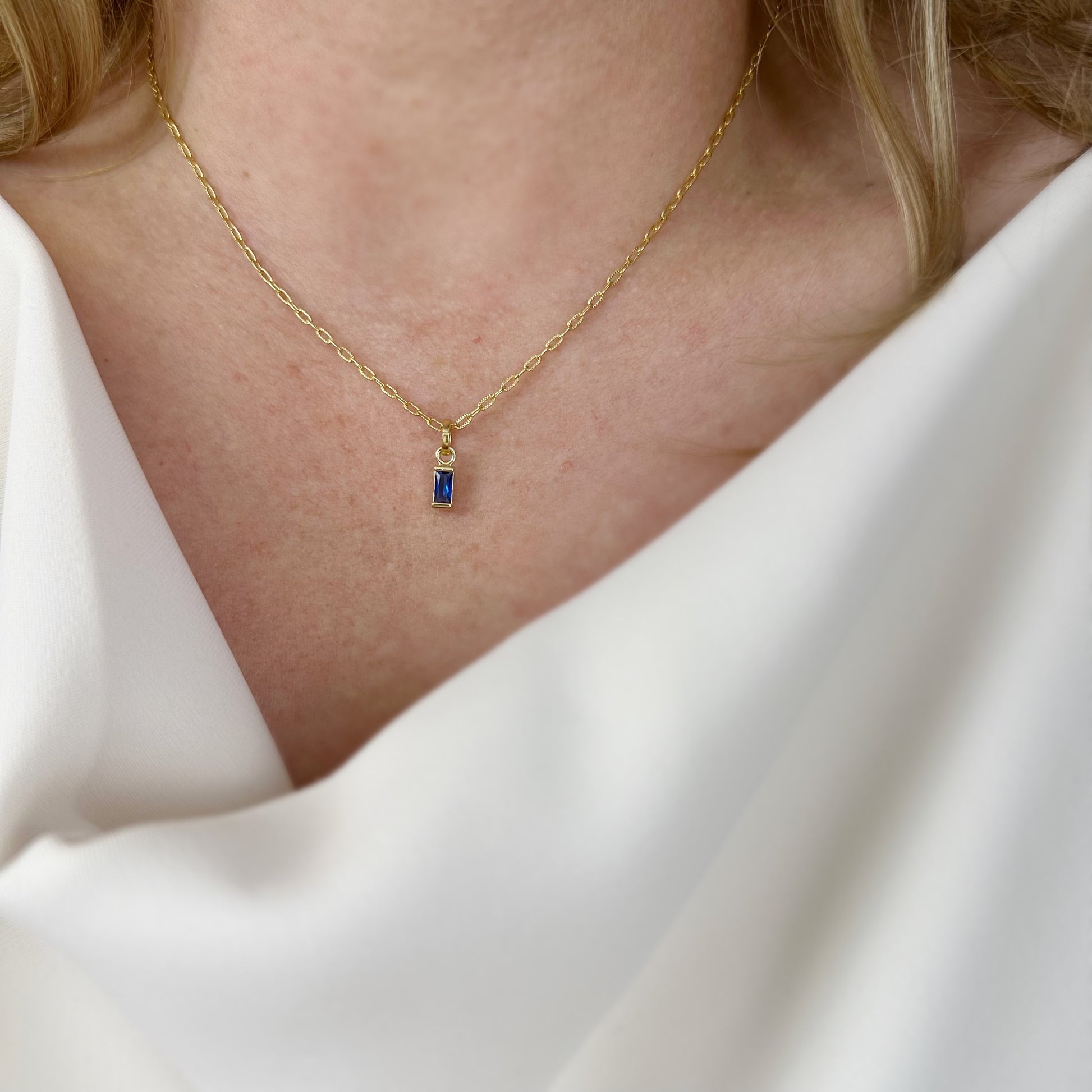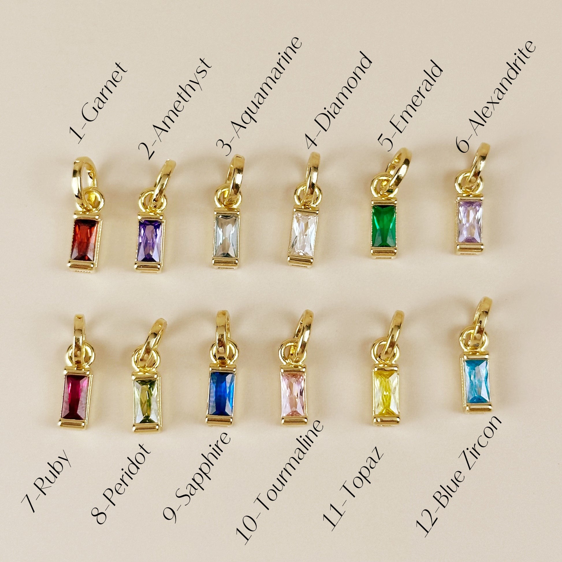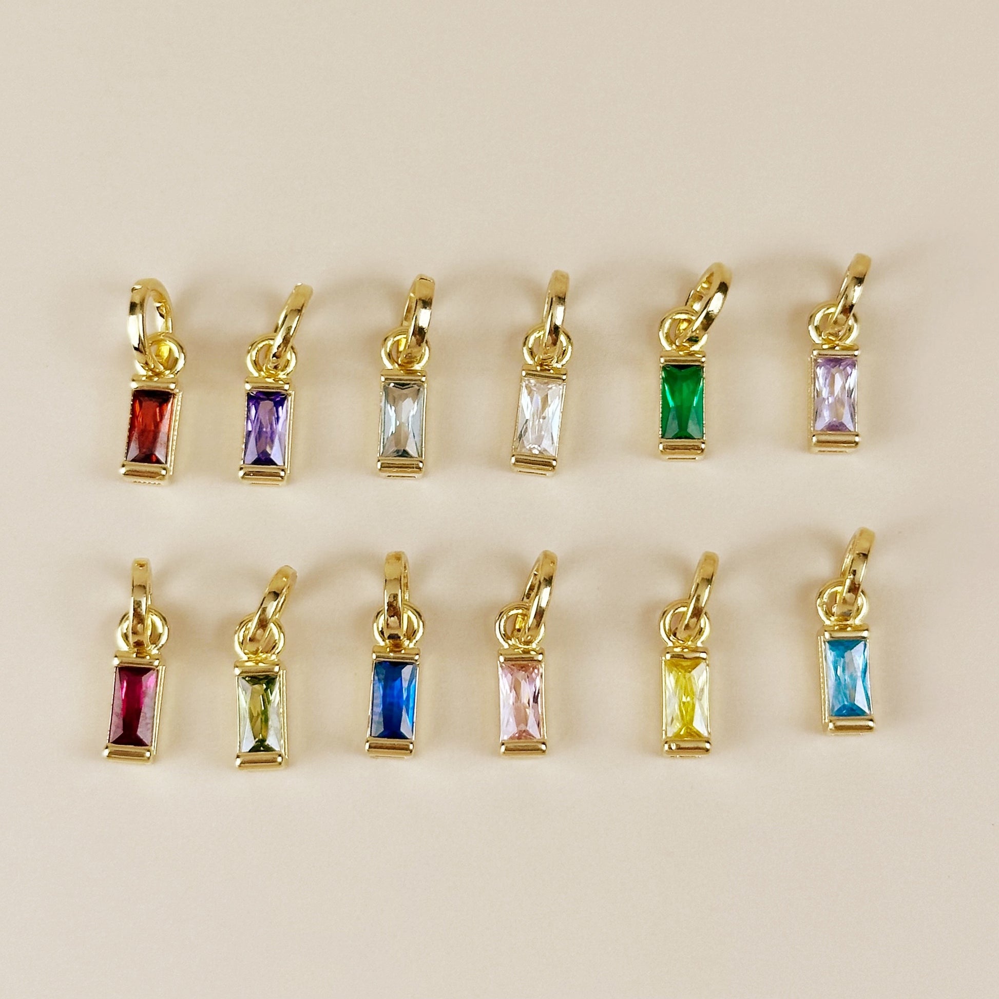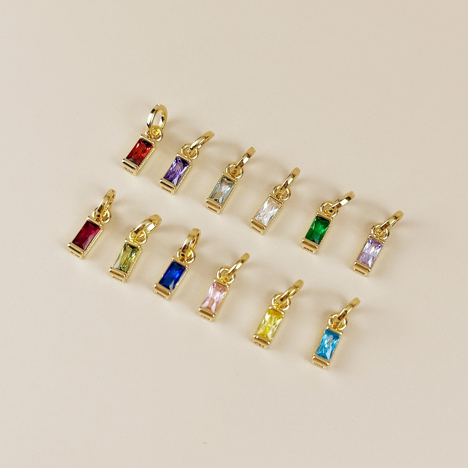 Birthstone Pendant - Baguette CZ Charm for Necklaces