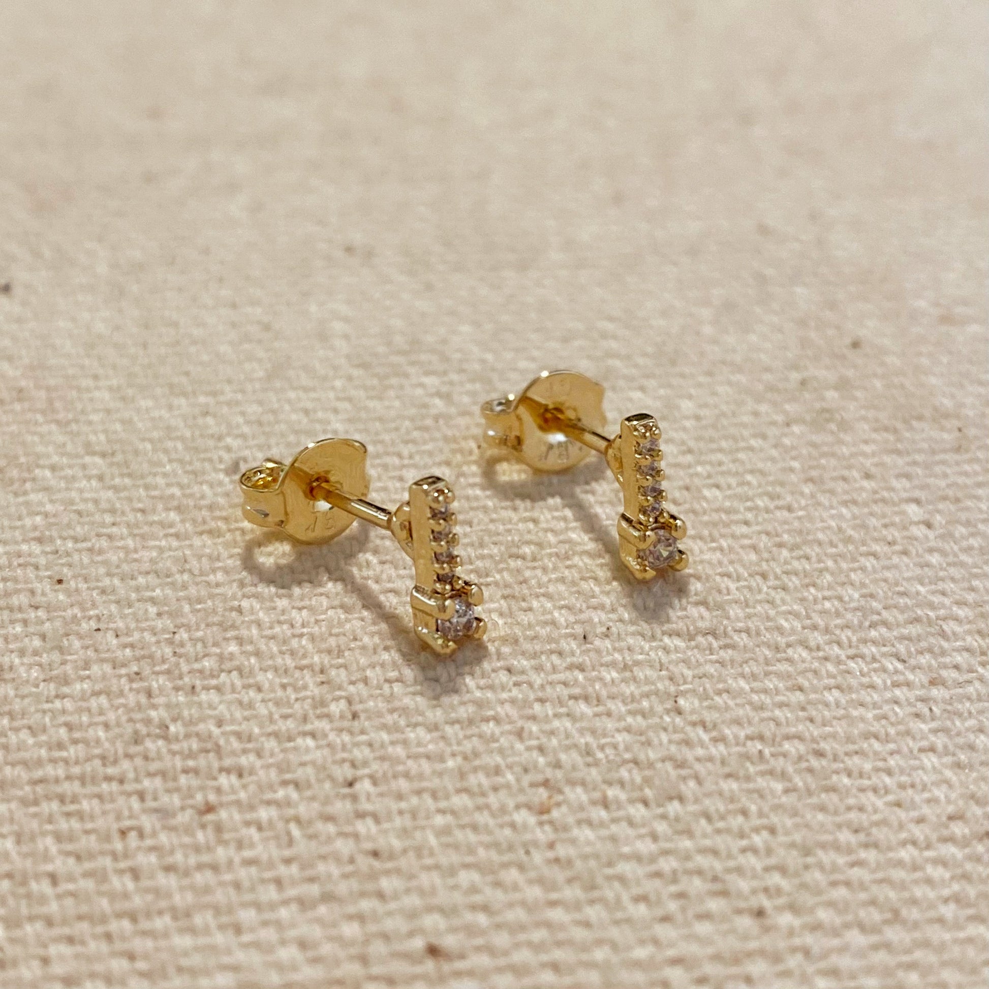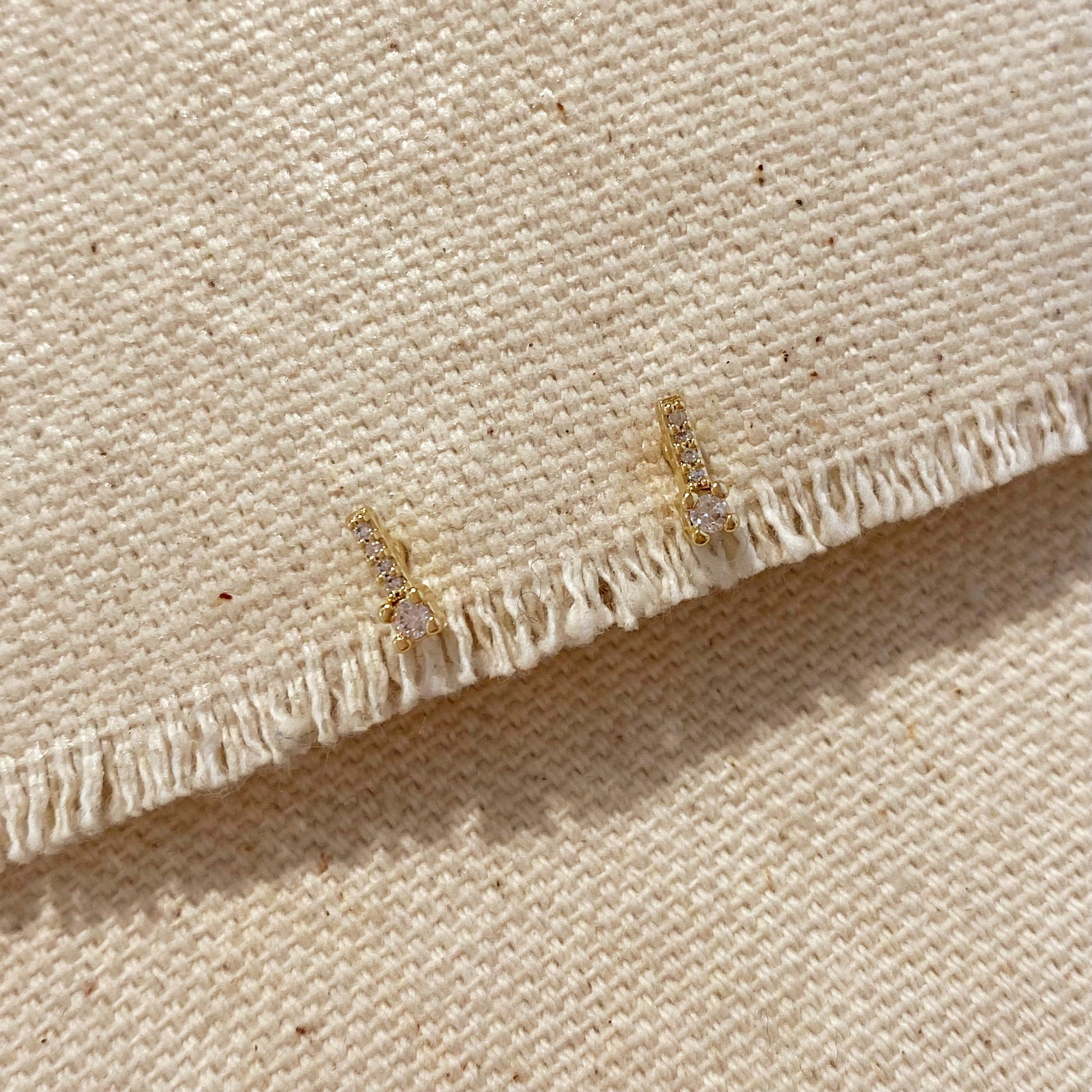 18k Gold Filled Bar Stud Earrings With Micro Cubic Zirconia Stones