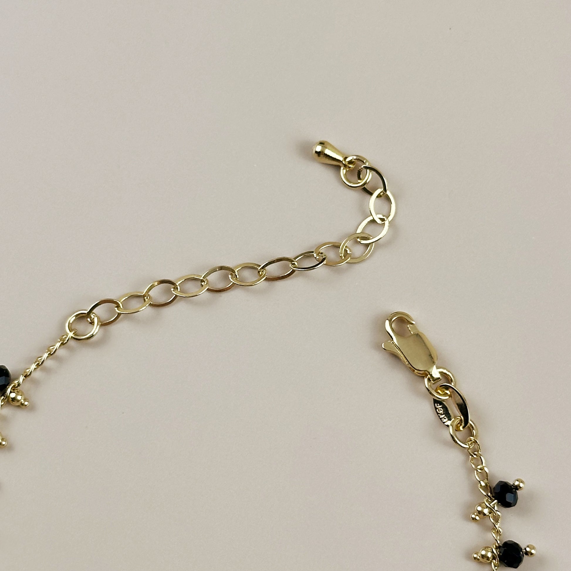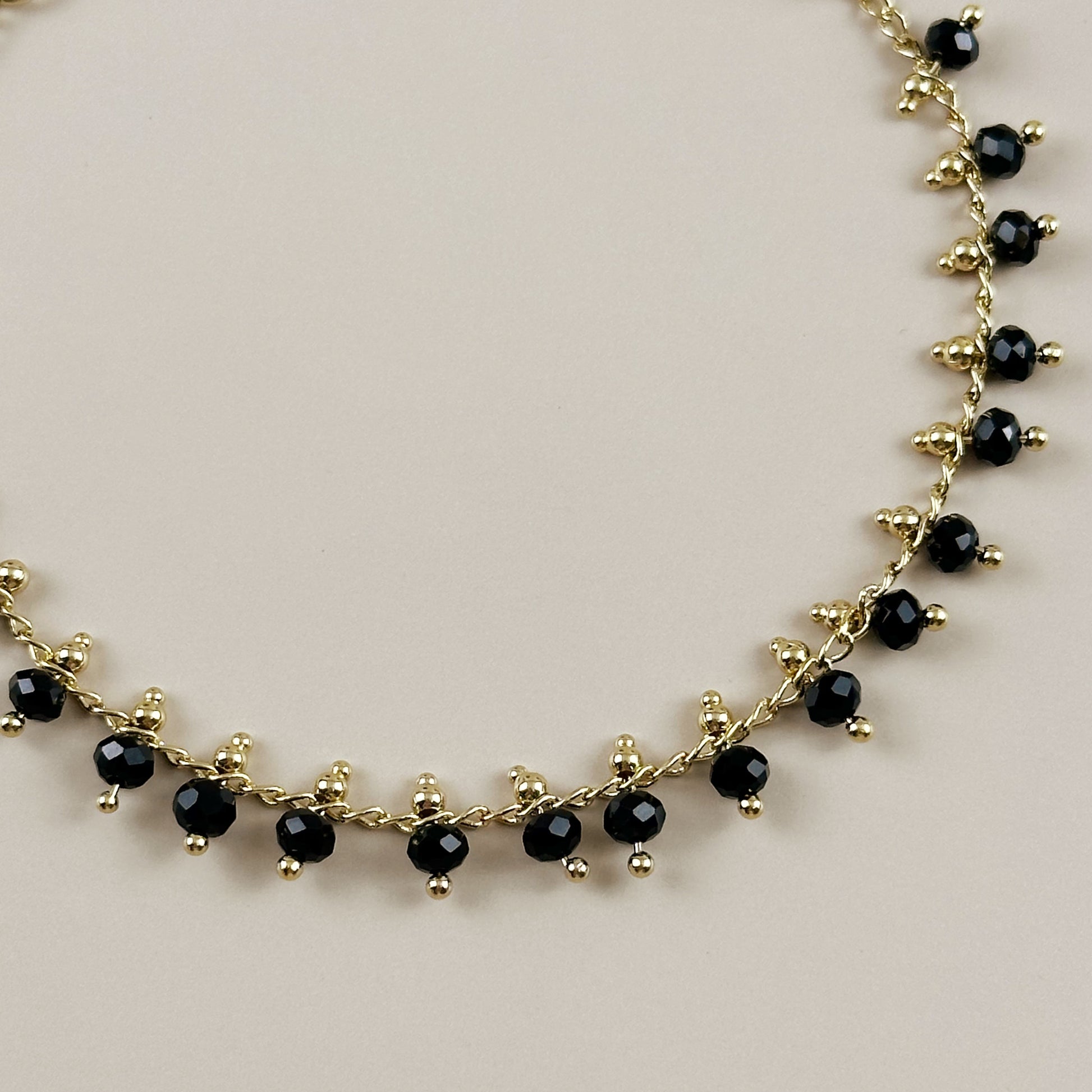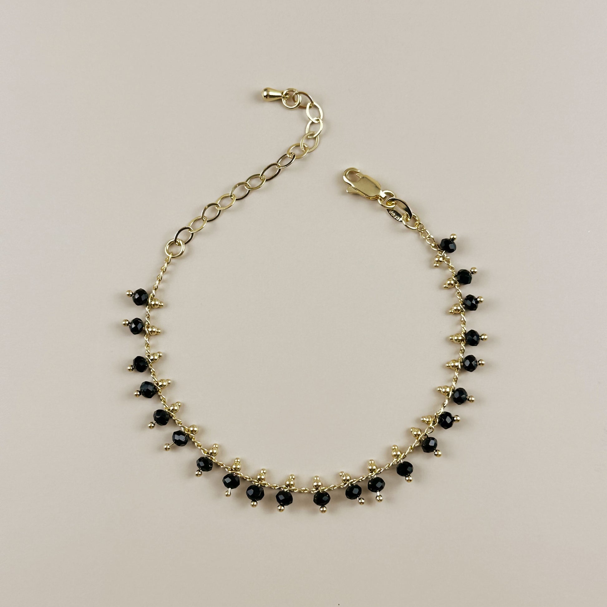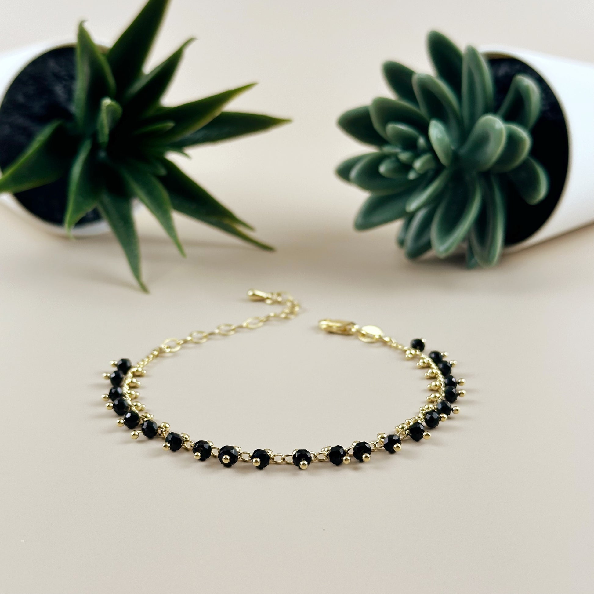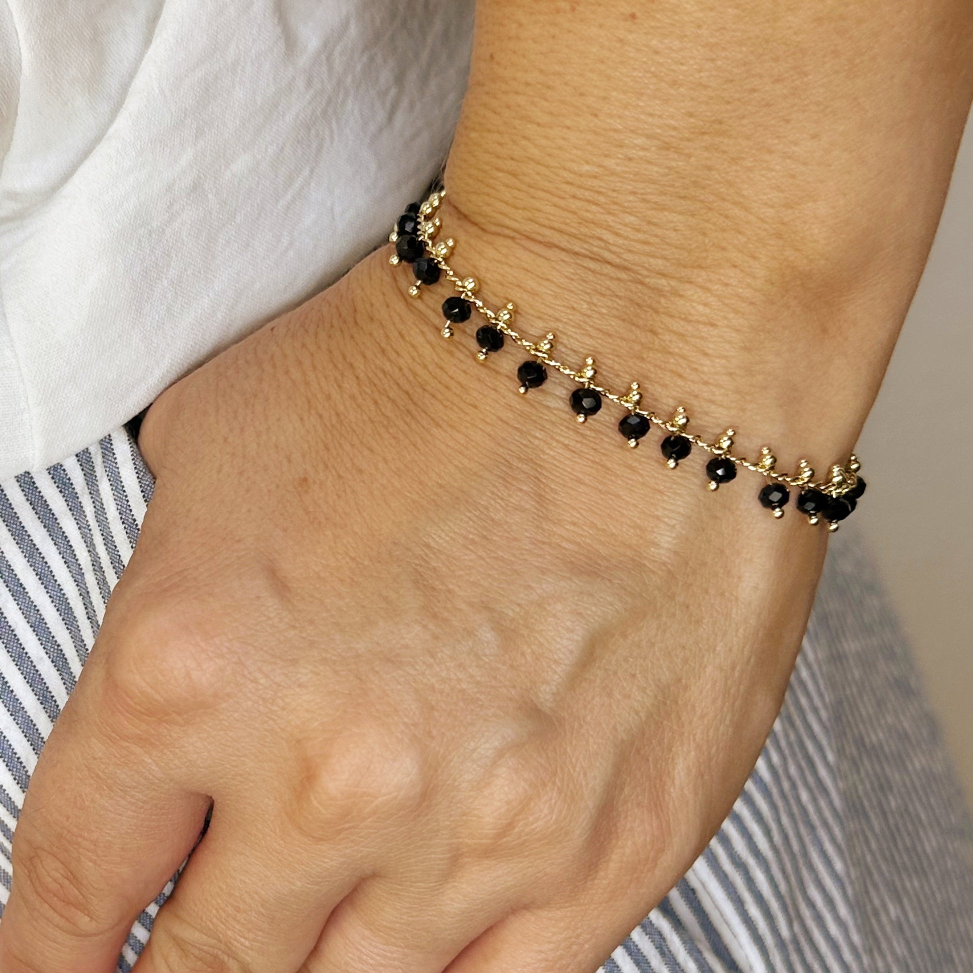 Elevate your jewelry collection with this stunning 18k gold filled black beaded bracelet that perfectly balances elegance and edge. The rich black beads create a striking contrast against the warm gold accents, making this the ideal statement piece for any outfit.