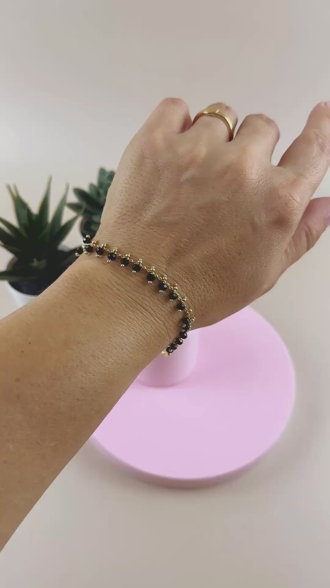 Keywords: black beaded bracelet, 18k gold filled bracelet, women's statement bracelet, hypoallergenic bracelet, handmade jewelry Brazil, black and gold jewelry, elegant bracelet, water resistant jewelry, nickel free bracelet, gift jewelry women