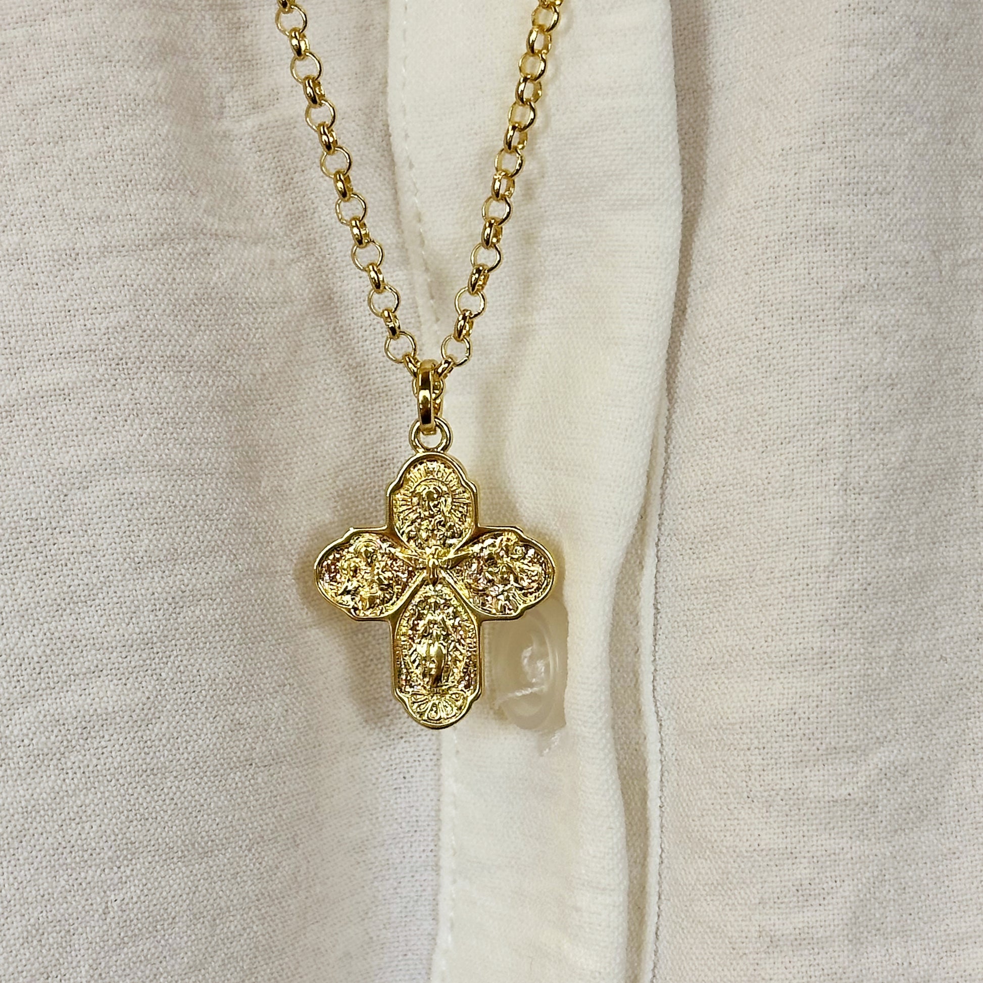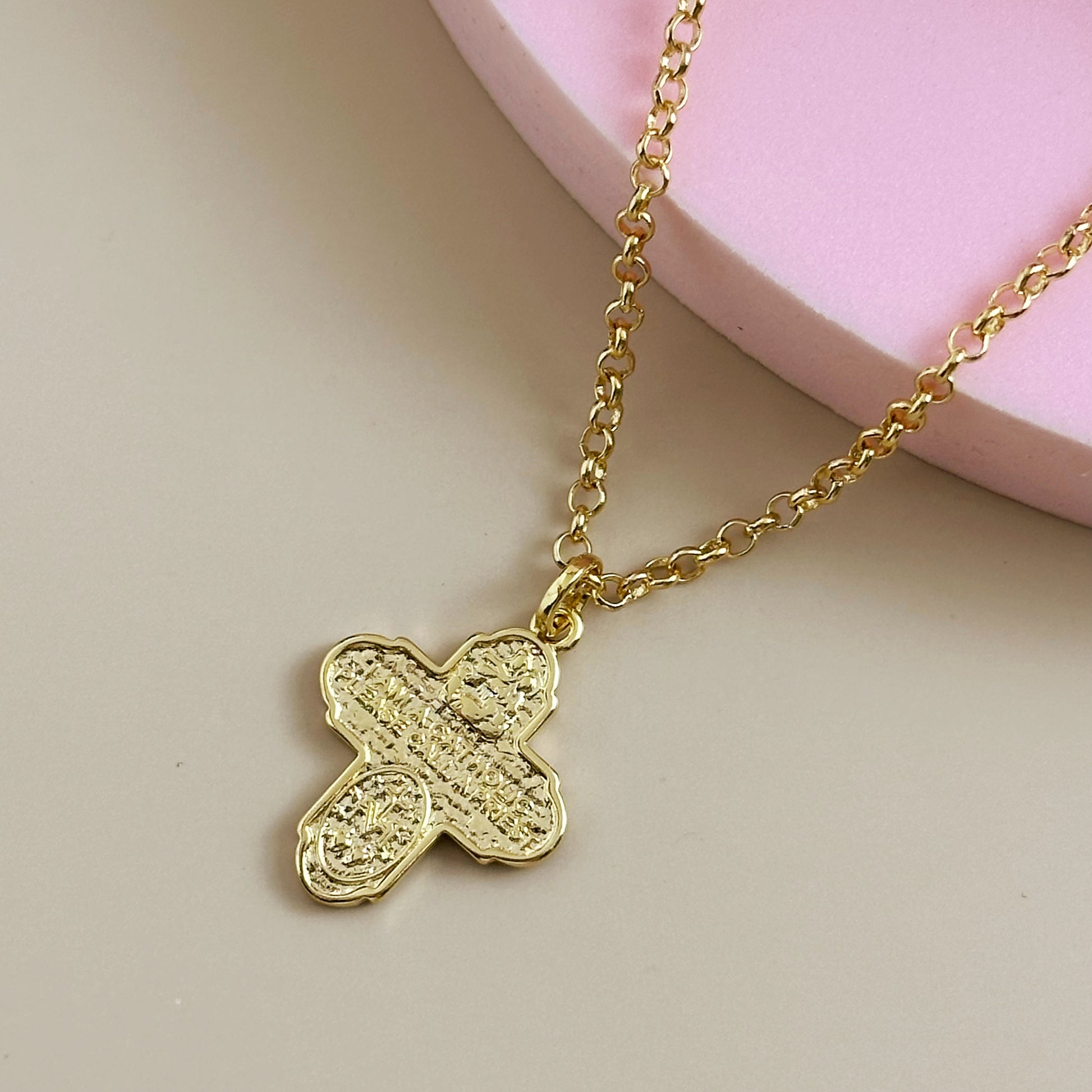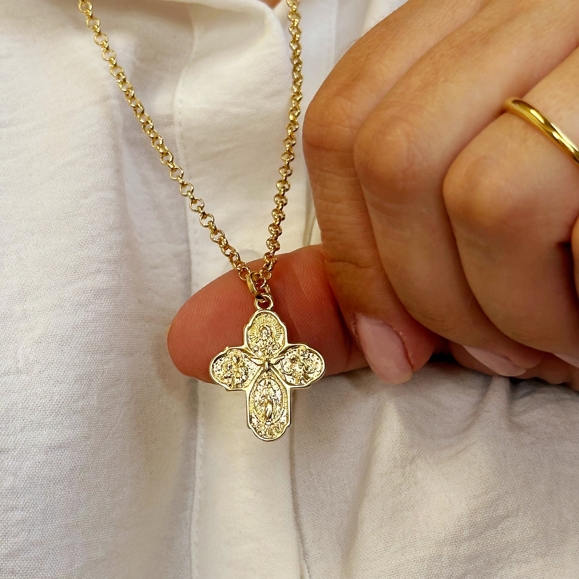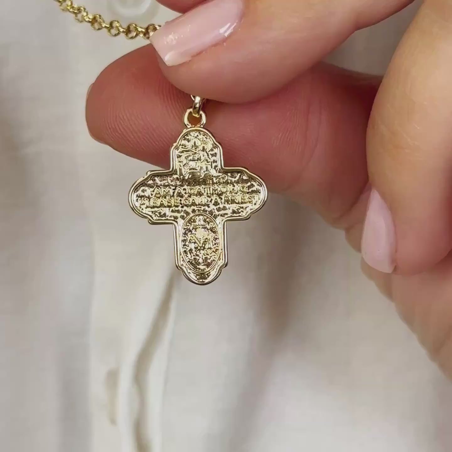 Stunning Double-Sided Catholic Cross Pendant | Waterproof Gold Jewelry | Handcrafted Religious Necklace