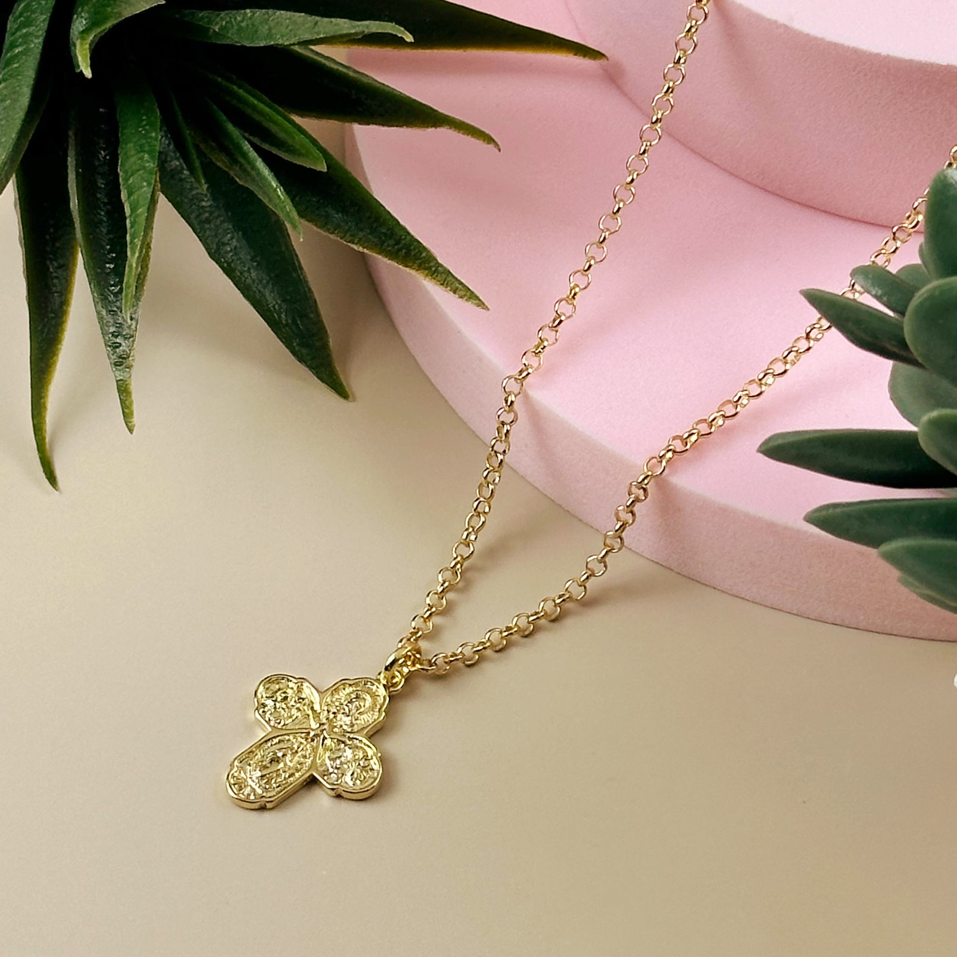 Tags: Catholic jewelry, religious necklace, gold cross pendant, women's faith jewelry, waterproof gold necklace, Catholic gifts, religious gifts for women, handmade cross jewelry, spiritual protection jewelry, confirmation gifts, communion jewelry, Brazilian handcrafted jewelry