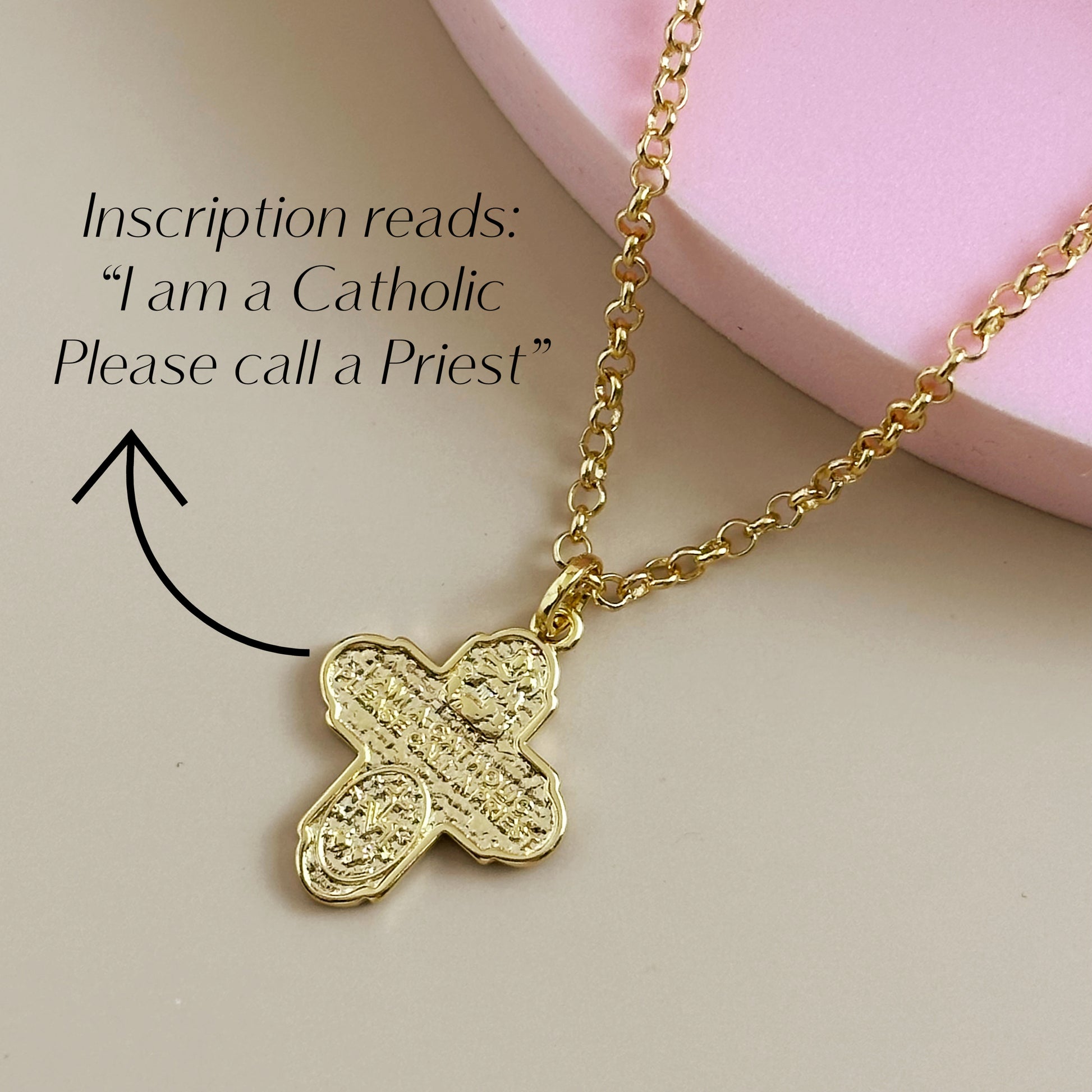 - Double-Sided Design: Features sacred cross on front with meaningful "I am a Catholic. Please call a priest" inscription on back
