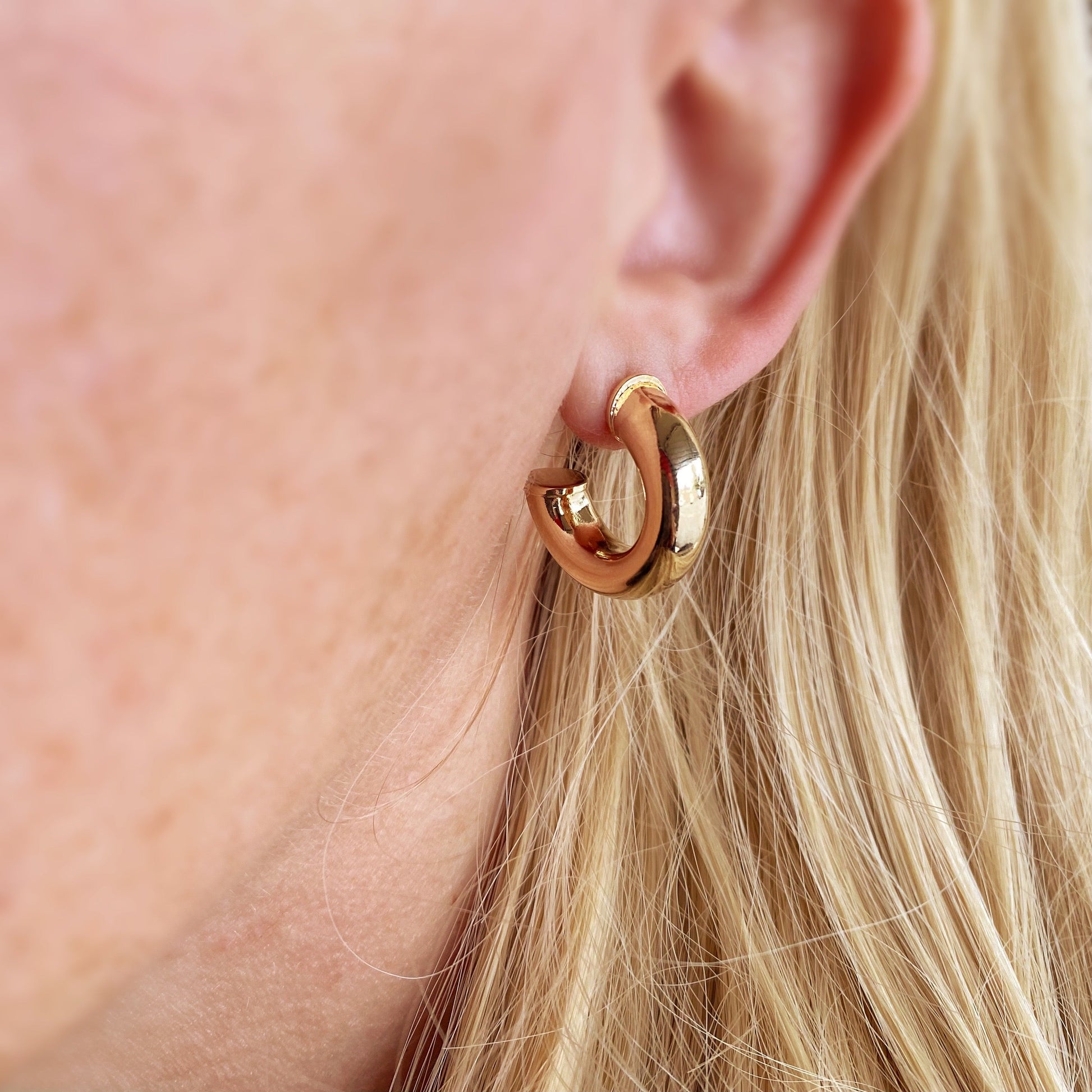 Our collection of semi or c-hoop is to die for. All sizes, fat, skinny with post or latch, you name it. We have it all! And this is a chubby and short one. A kind of hoop earring that everyone wants to know where it is from.