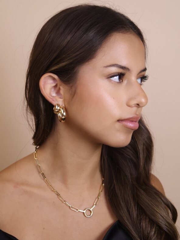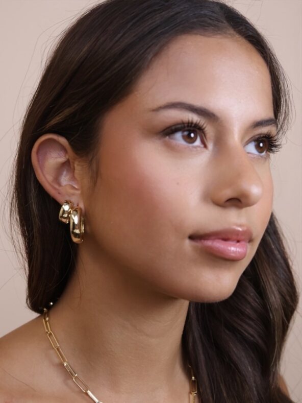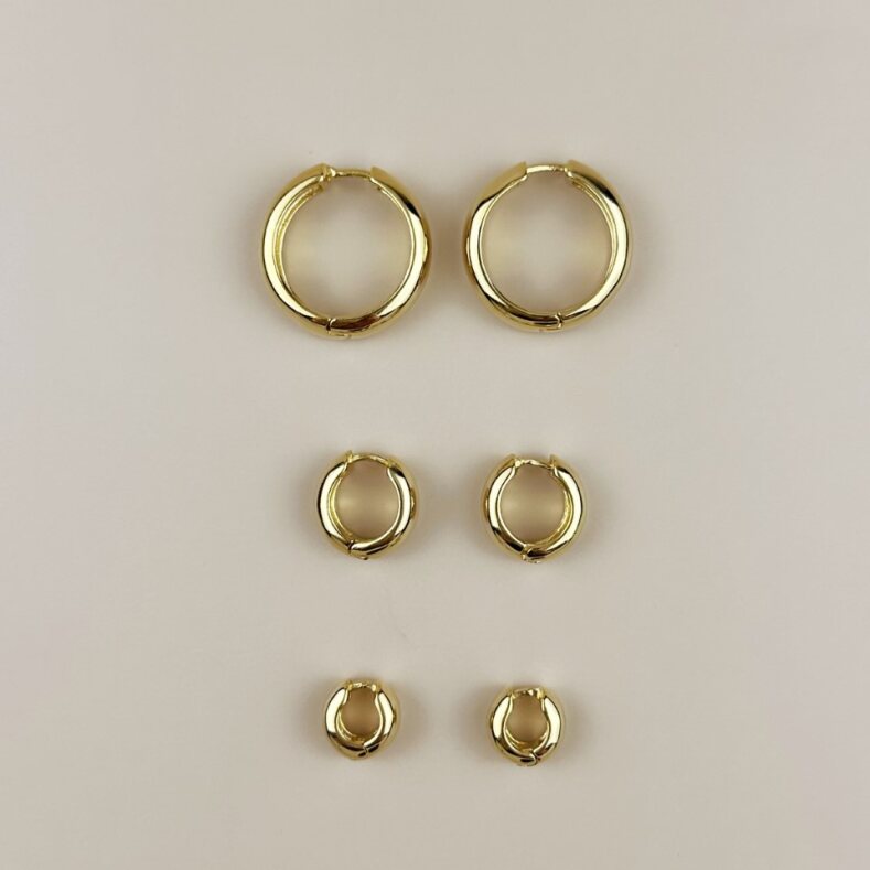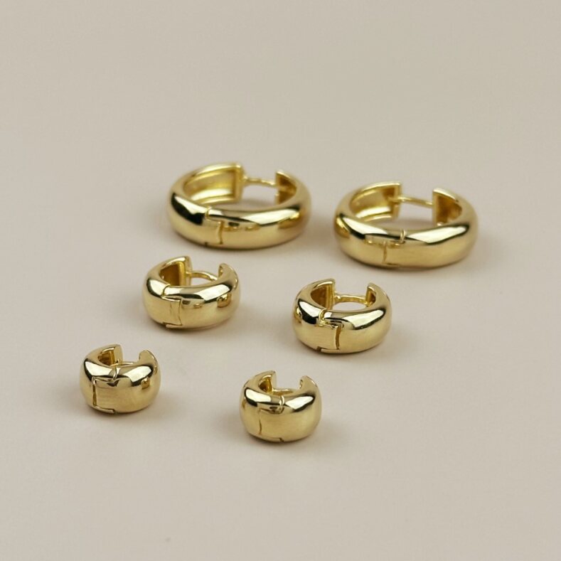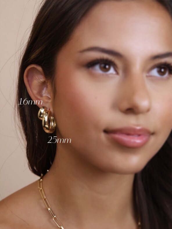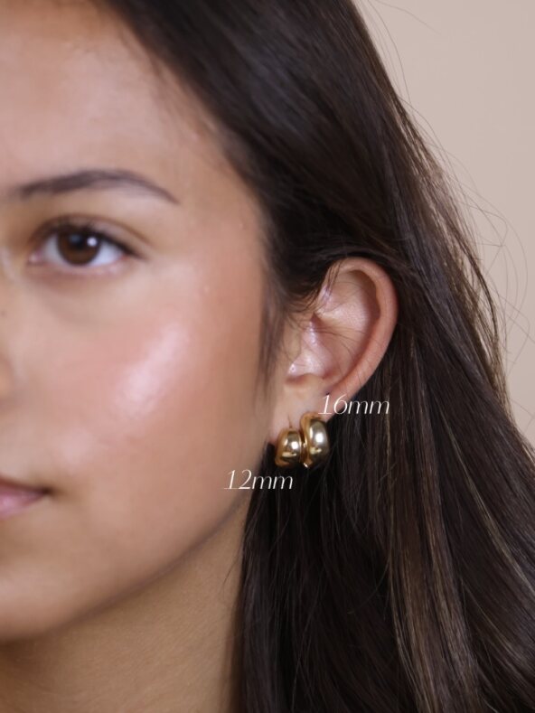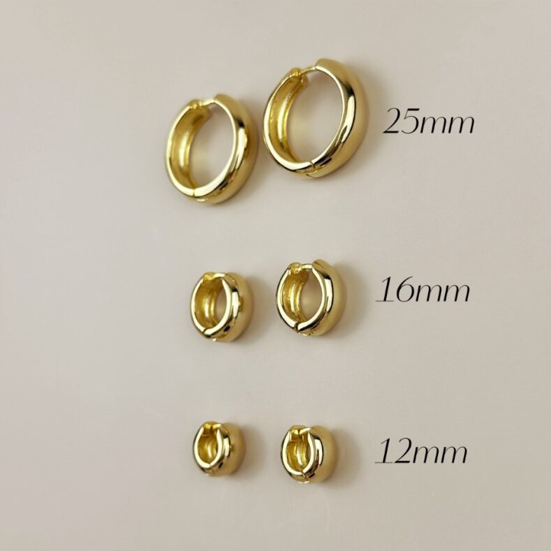 12mm Diameter (Small) - Everyday Elegance Perfect for daily wear and professional settings. Subtle yet noticeable, these small chunky hoops add sophistication without overwhelming your look. Ideal for first-time hoop wearers or those who prefer understated glamour.