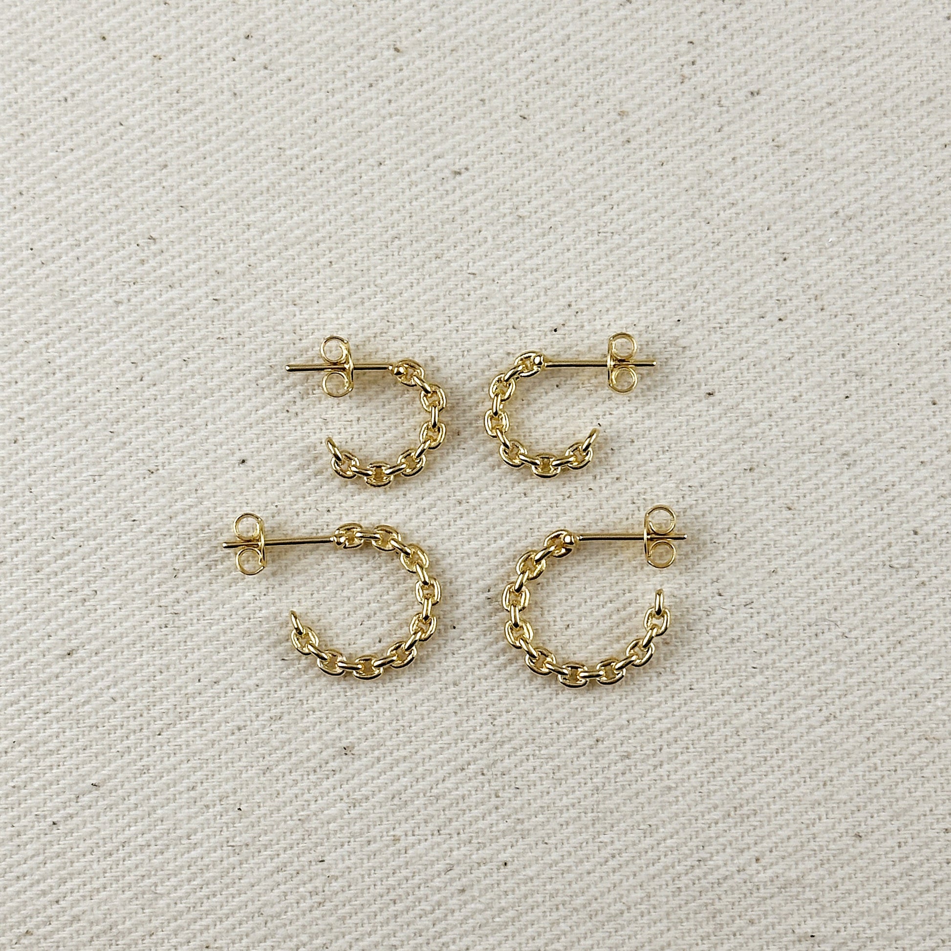 18k Gold Filled Crafted Chain C-Hoop Earrings
