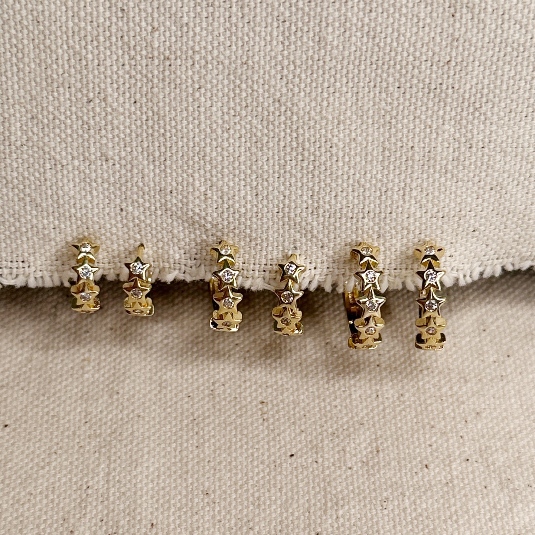 Celestial jewelry is timelessly popular, and these star-adorned hoops bring magic to your everyday look. The sparkling CZ stars create beautiful light reflection while the clicker closure ensures security during active days. Available in three sizes, you can choose your perfect diameter or collect them all for versatile styling options.