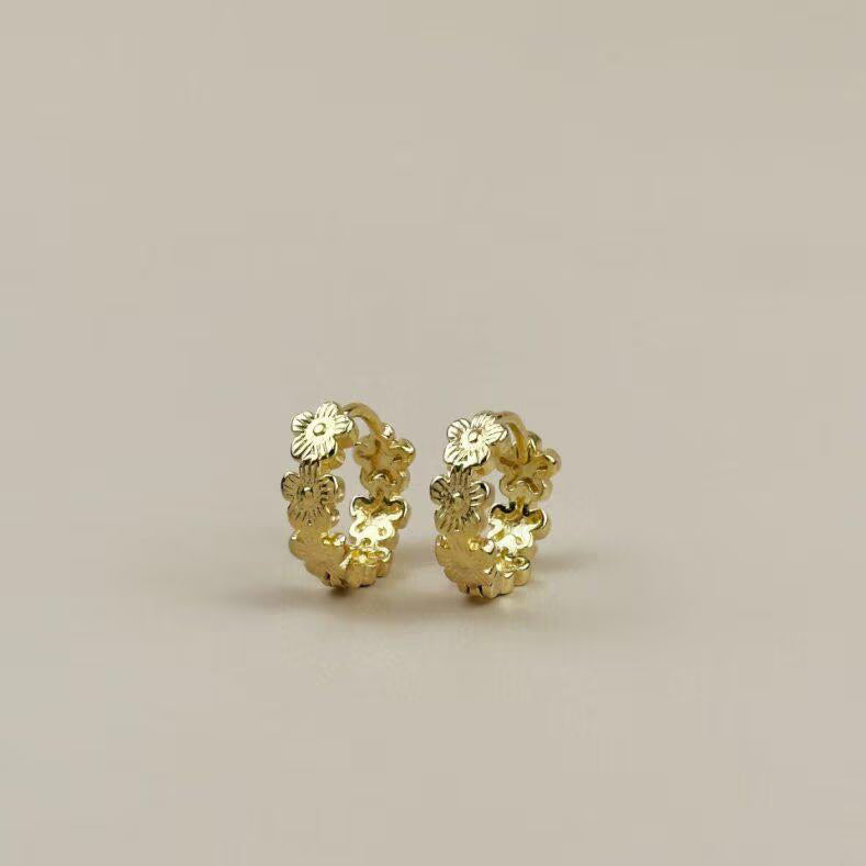 Transform your everyday look with these adorable 18K gold filled flower huggie hoop earrings that perfectly blend feminine charm with modern sophistication. These petite hoops feature delicate floral details that add a touch of nature-inspired elegance to any outfit, making them the perfect choice for women who love cute, versatile jewelry.