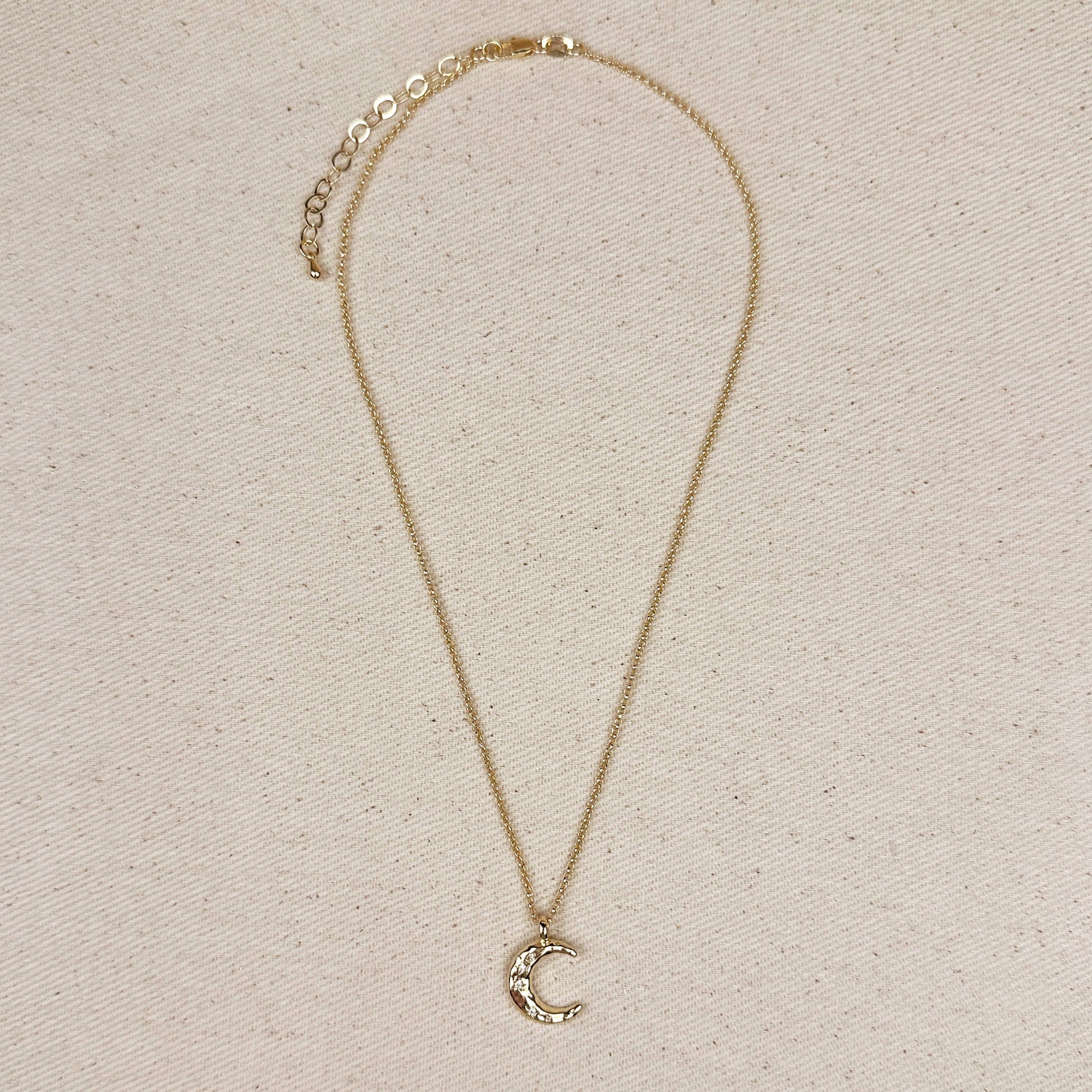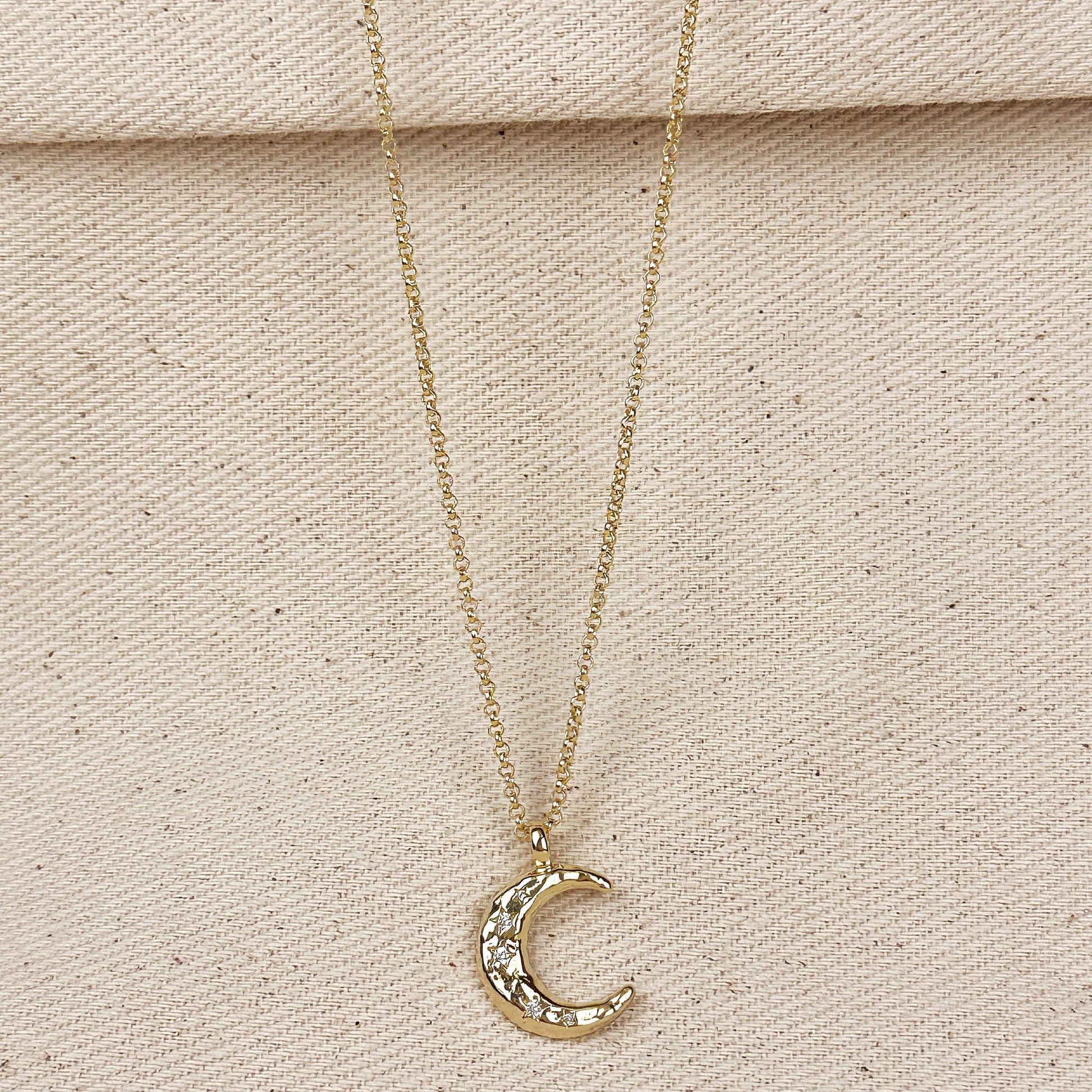 18k Gold Filled Hammered Crescent Moon CZ Necklace