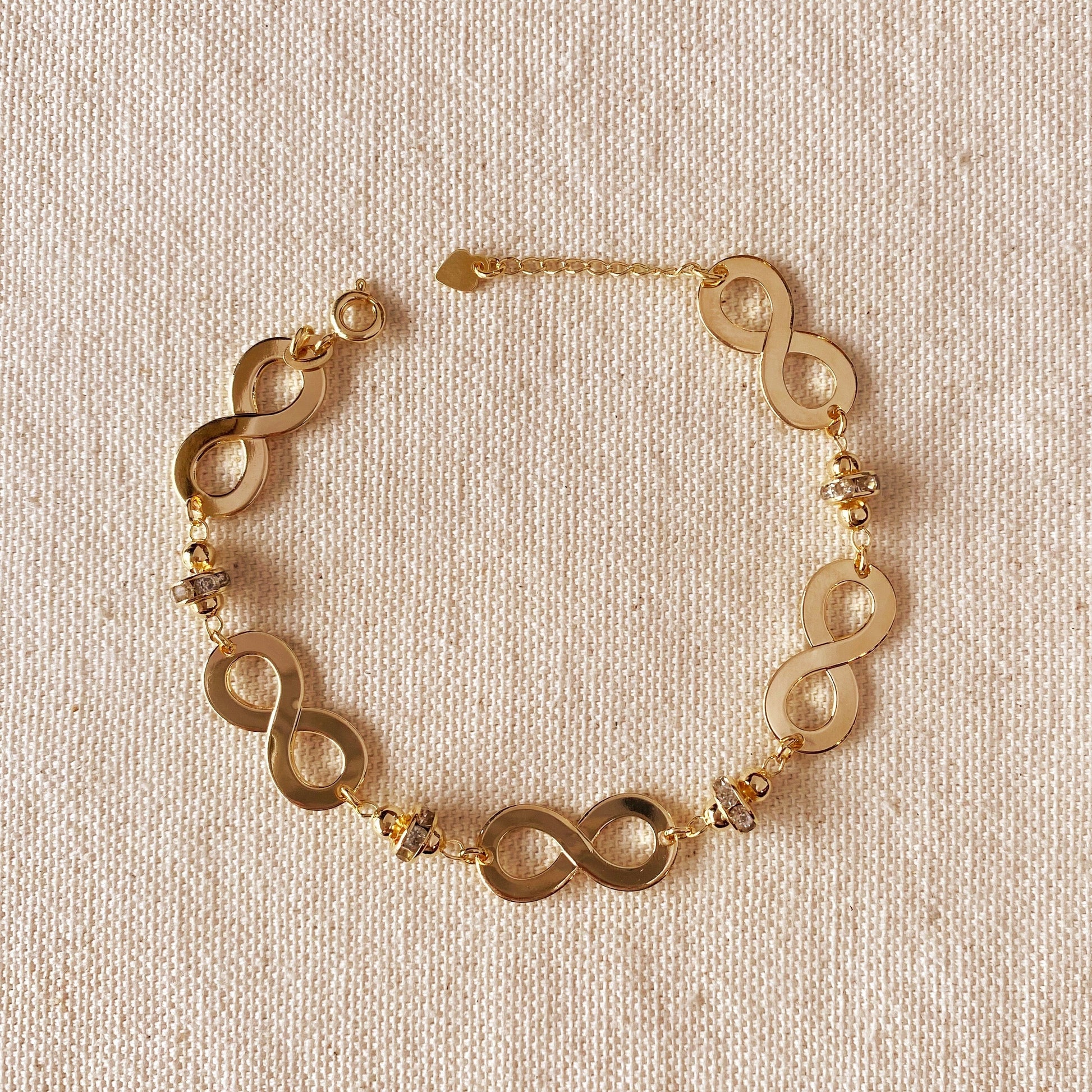 18k Gold Filled Infinity Bracelet With Crystal Beads