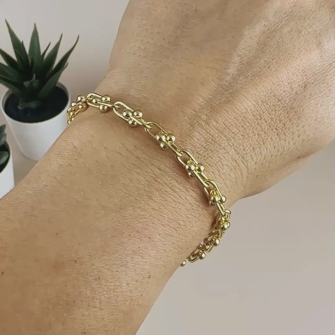 Turn heads and own every room you enter with this show-stopping 18K gold filled chain bracelet. This isn't just jewelry - it's your secret weapon for looking effortlessly chic and undeniably powerful. One glance at your wrist and everyone will know you have impeccable taste.