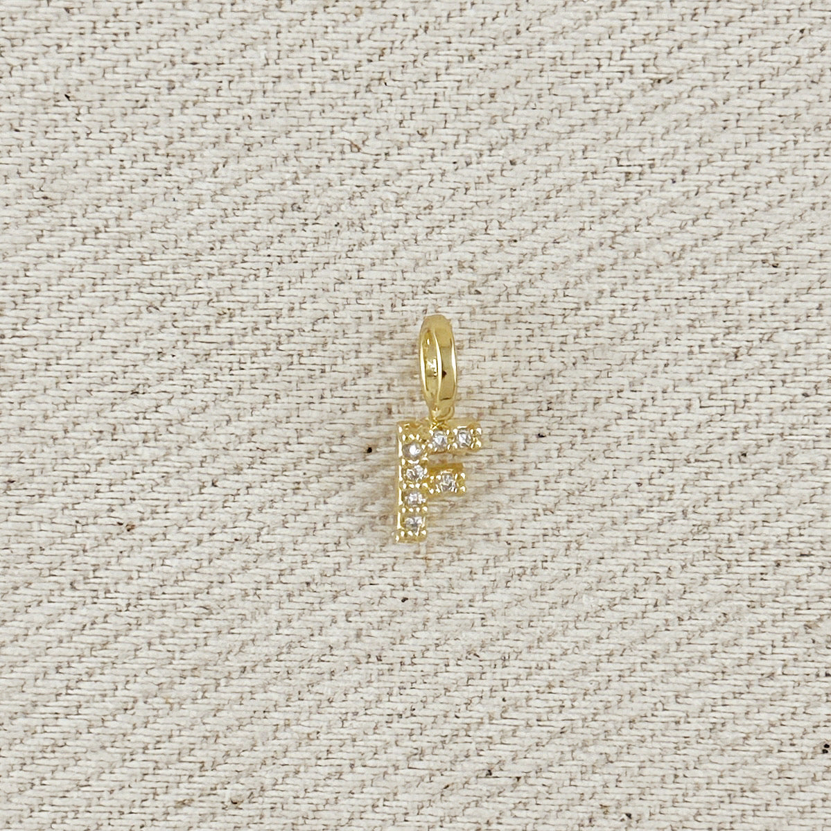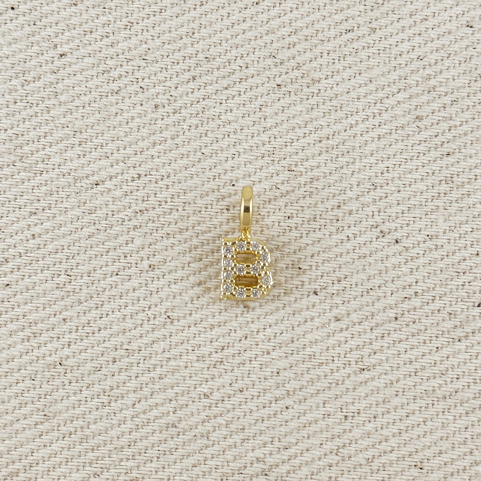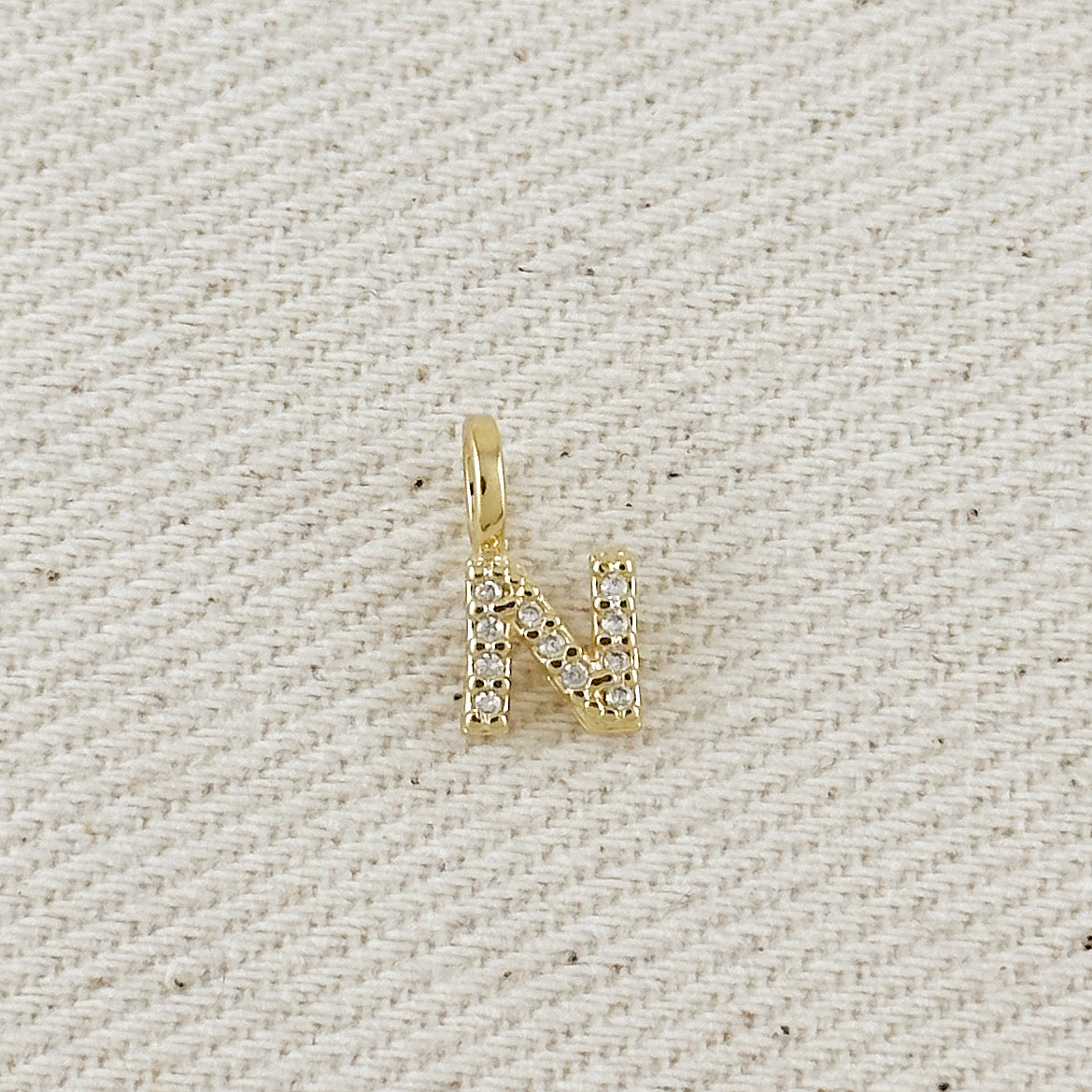 Add a personal touch to your jewelry with our delicate 18K Gold Filled Initial Letter Charm, featuring sparkling micro cubic zirconia stones. Each letter is meticulously crafted with tiny CZ stones that catch the light beautifully, creating a sophisticated sparkle effect. The premium 18K gold-filled setting ensures lasting durability while maintaining its luxurious appearance. Perfect for adding to necklaces, bracelets, or our carabiner clasp chains, these dainty initial charms allow you to create meaningful combinations or wear your own initial as a subtle statement piece. The perfect way to personalize your jewelry collection or create a thoughtful, customized gift.