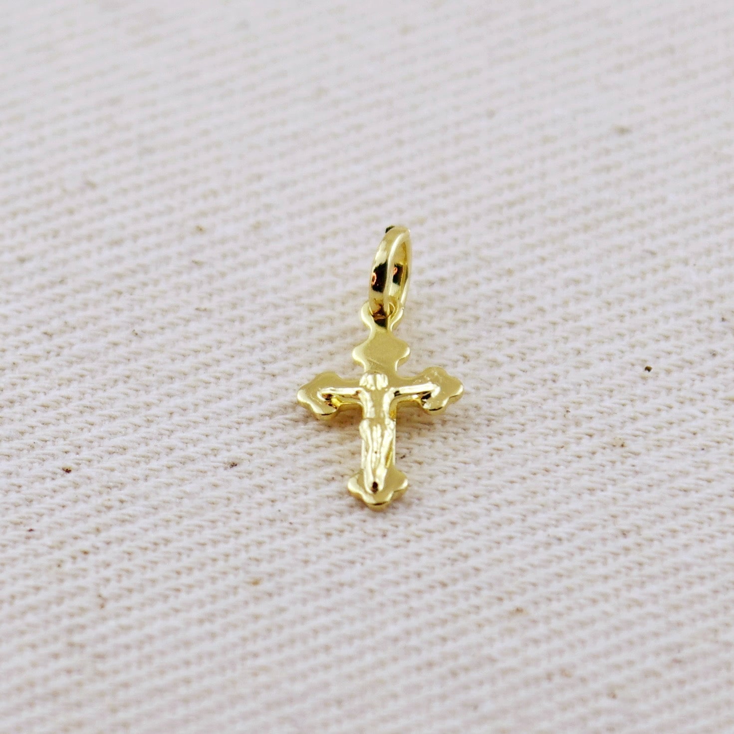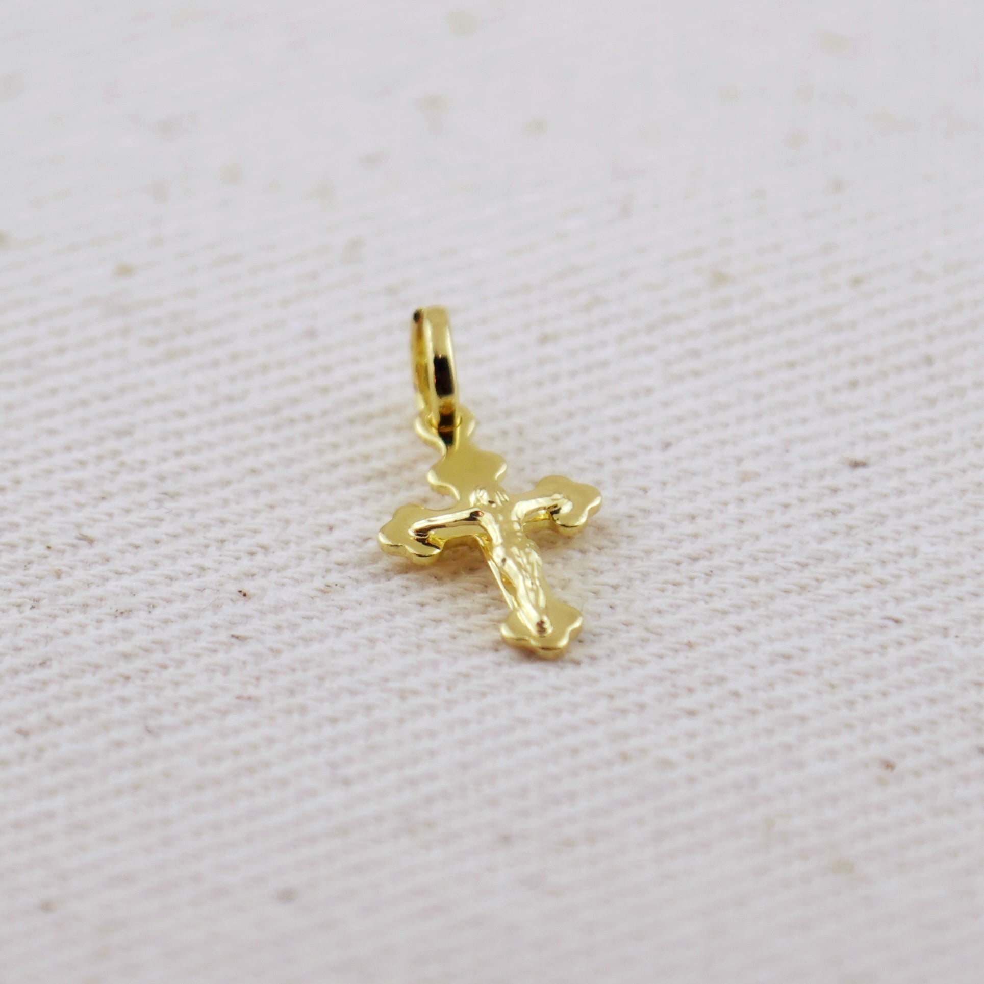 Keywords: mini gold crucifix pendant, 18k gold filled cross necklace, religious jewelry women, Christian jewelry, faith jewelry, cross pendant necklace, layering cross jewelry, baptism gift jewelry, confirmation jewelry, hypoallergenic religious jewelry, handmade cross pendant Brazil