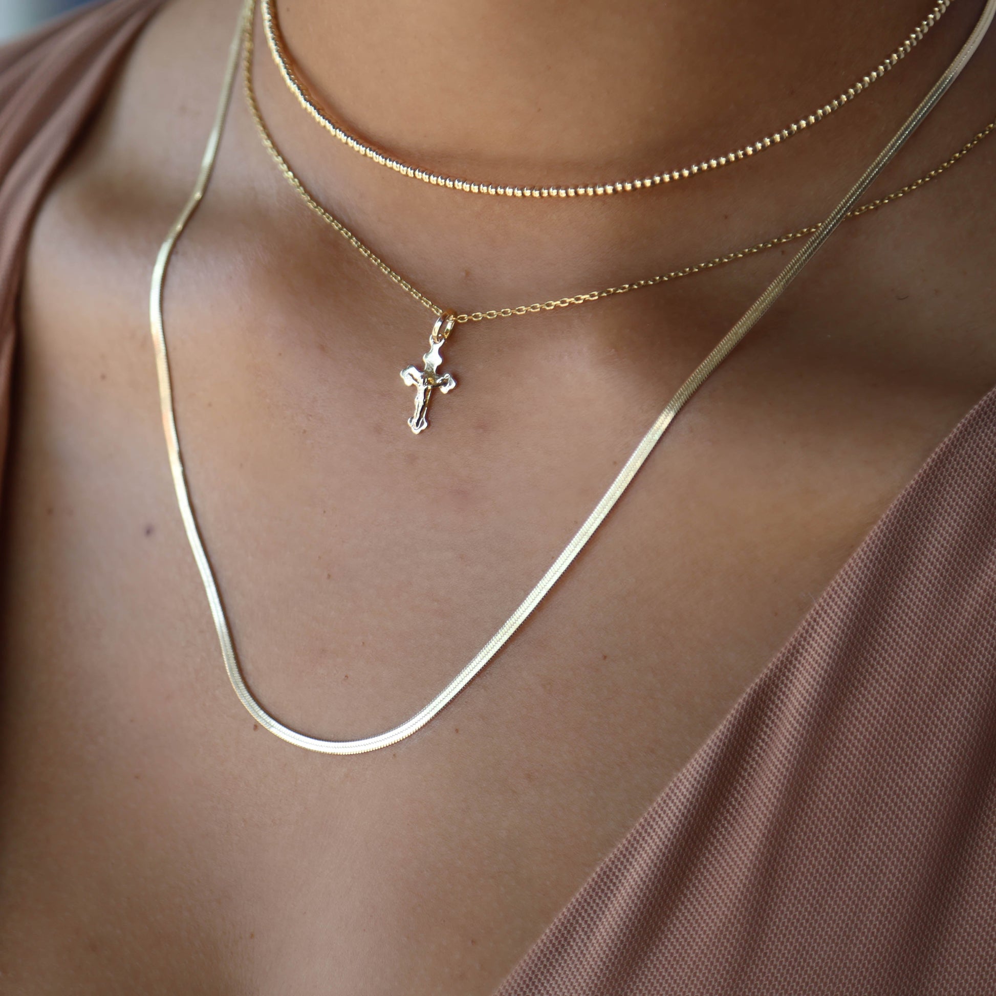 Mini Gold Crucifix Pendant for Women - Cross Necklace | Religious Jewelry