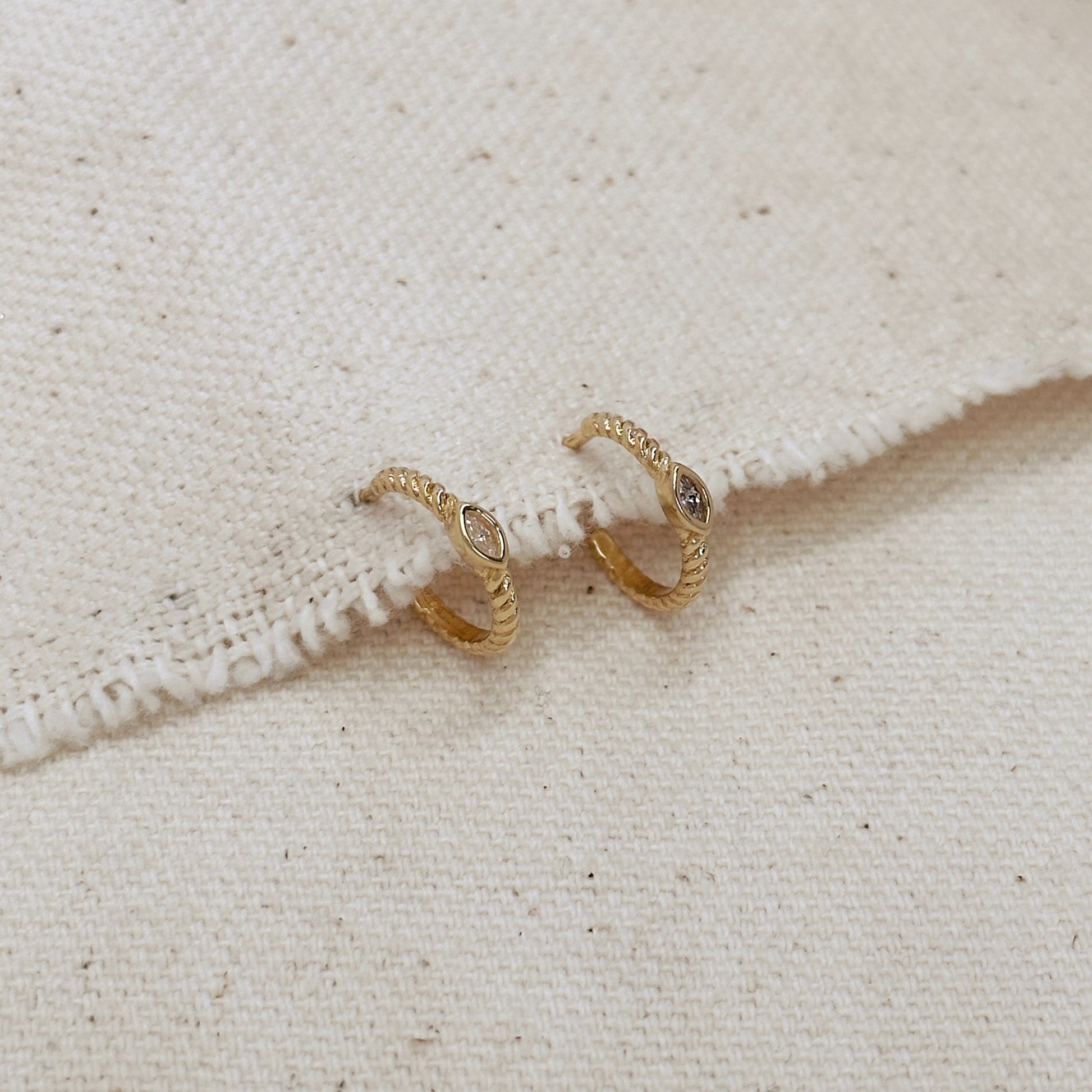 18k Gold Filled Mini CZ Eye C Hoop Earrings