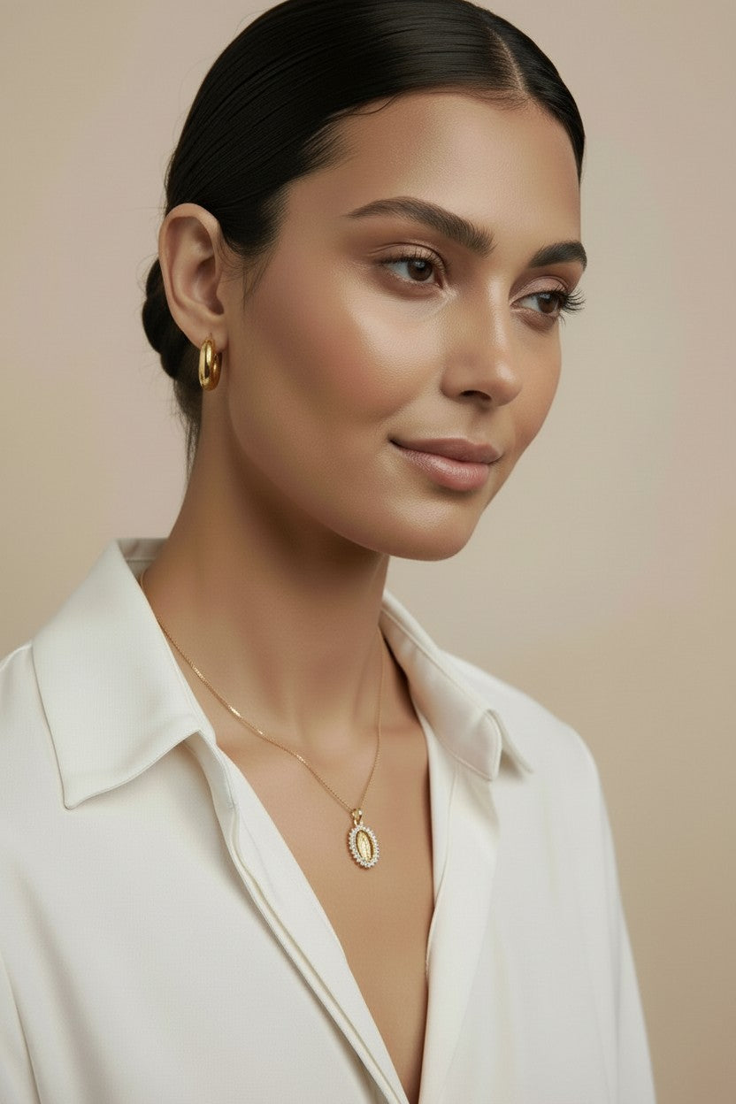 Mini CZ Lady of Guadalupe Necklace | Religious Gold-Filled Pendant for Women