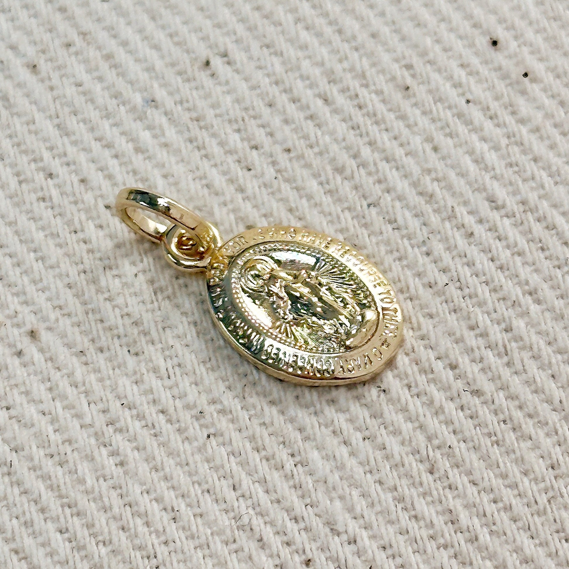 Keywords: Lady of Grace medal pendant, 18k gold filled Catholic jewelry, religious jewelry women, Mary medal pendant, double sided religious pendant, Catholic medal necklace, mini religious jewelry, waterproof Catholic pendant, Brazilian religious jewelry, Marian devotion jewelry, faith jewelry women