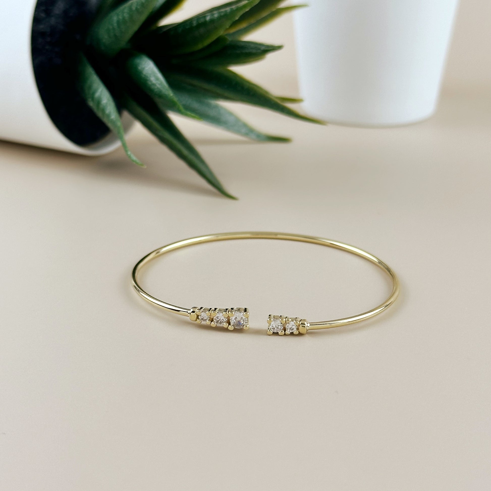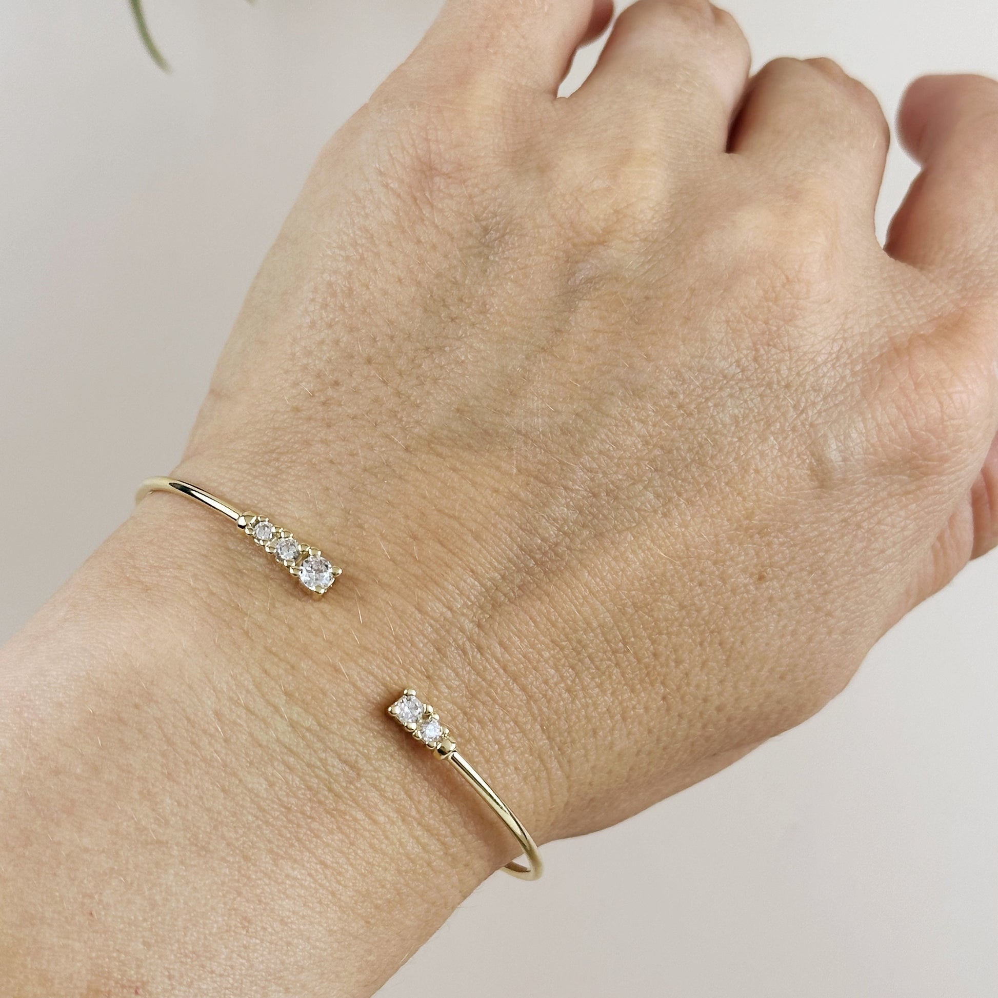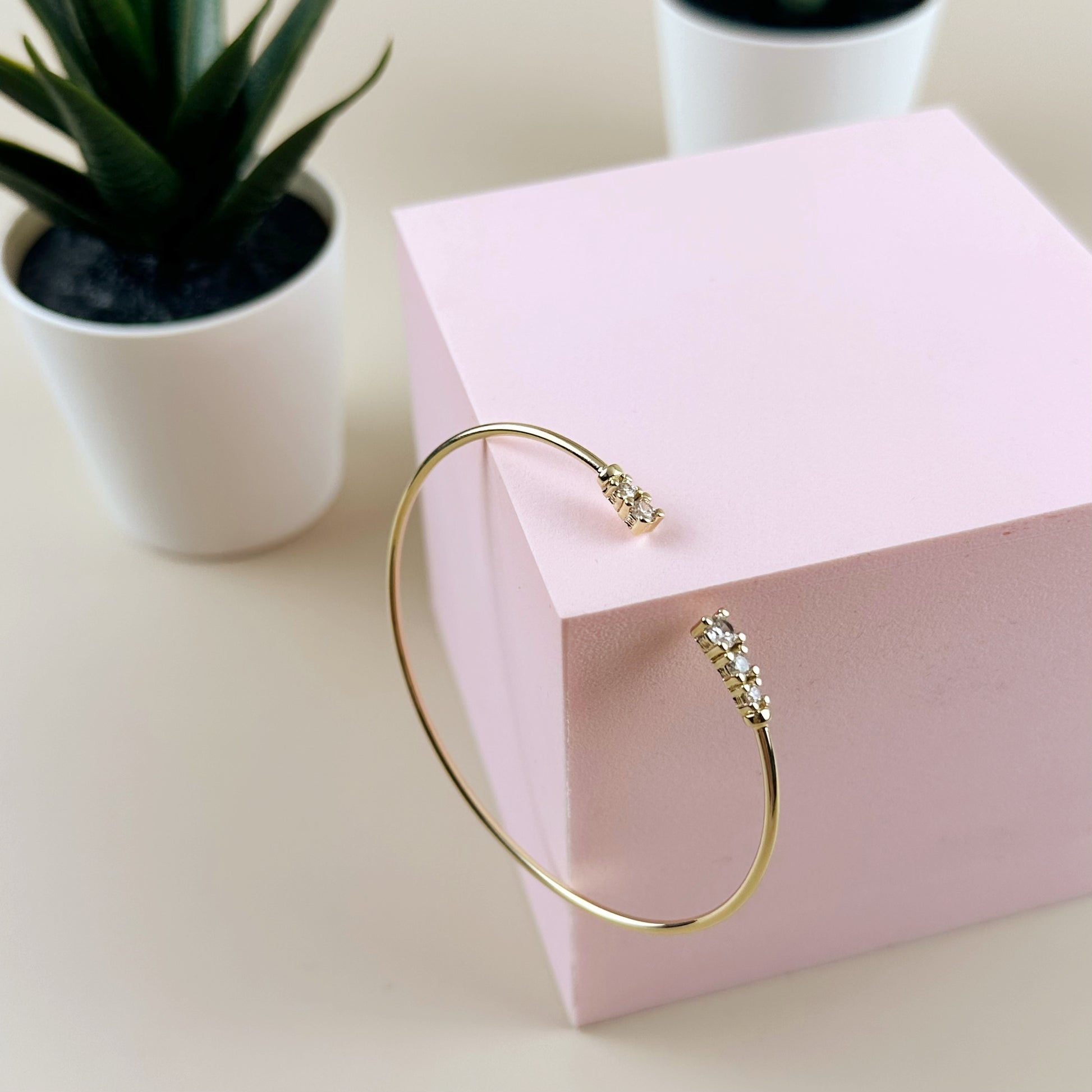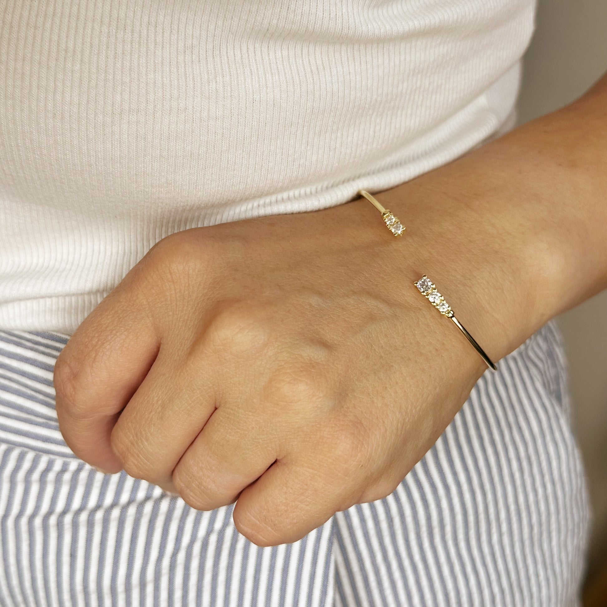 Wear this delicate cuff bracelet alone as a statement piece, or layer with other gold bracelets for an on-trend stacked look. The adjustable design makes it perfect for gifting, and the sparkling CZ stones add just the right amount of glamour without being overwhelming.