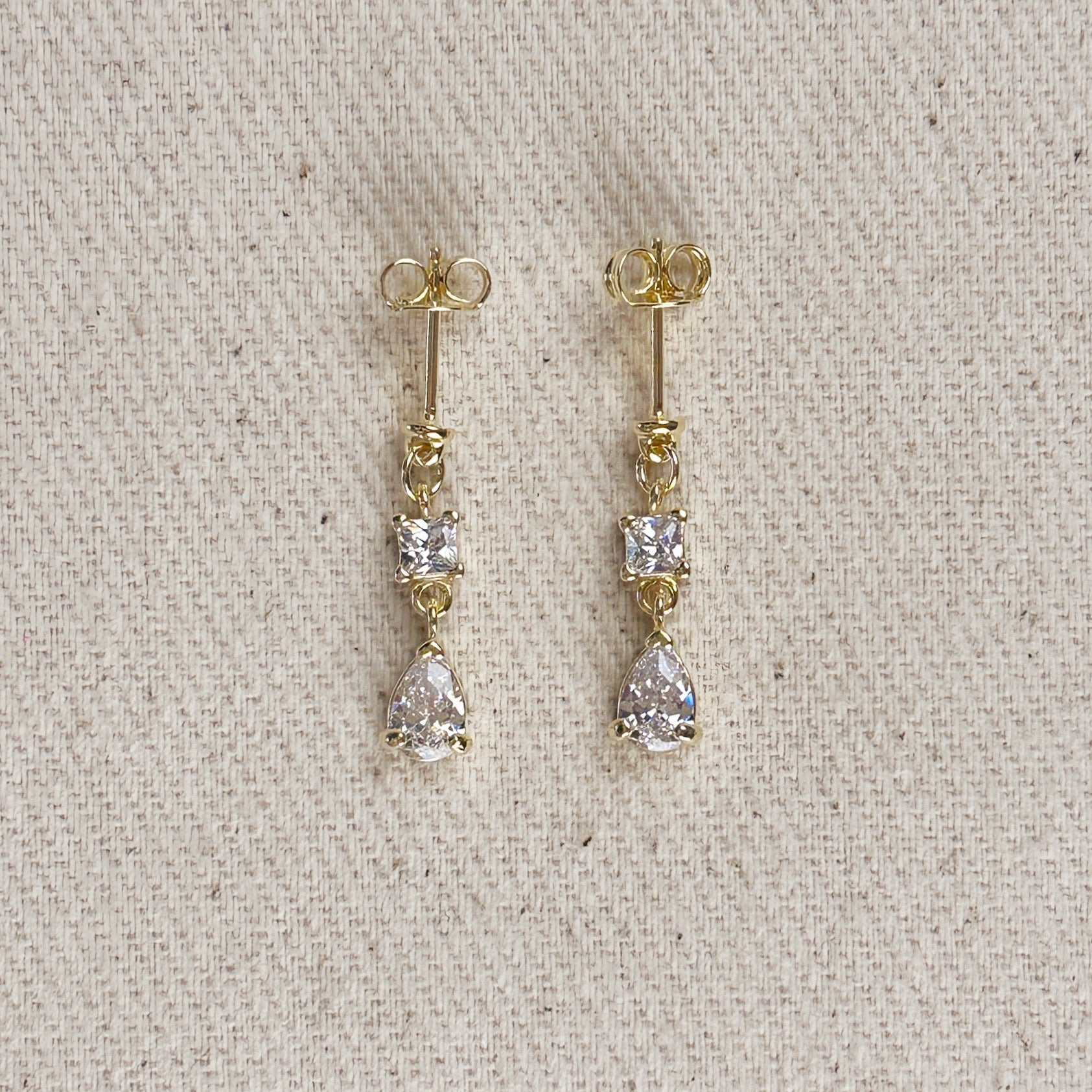 18k Gold Filled Princess Cut and Drop CZ Dangling Earrings