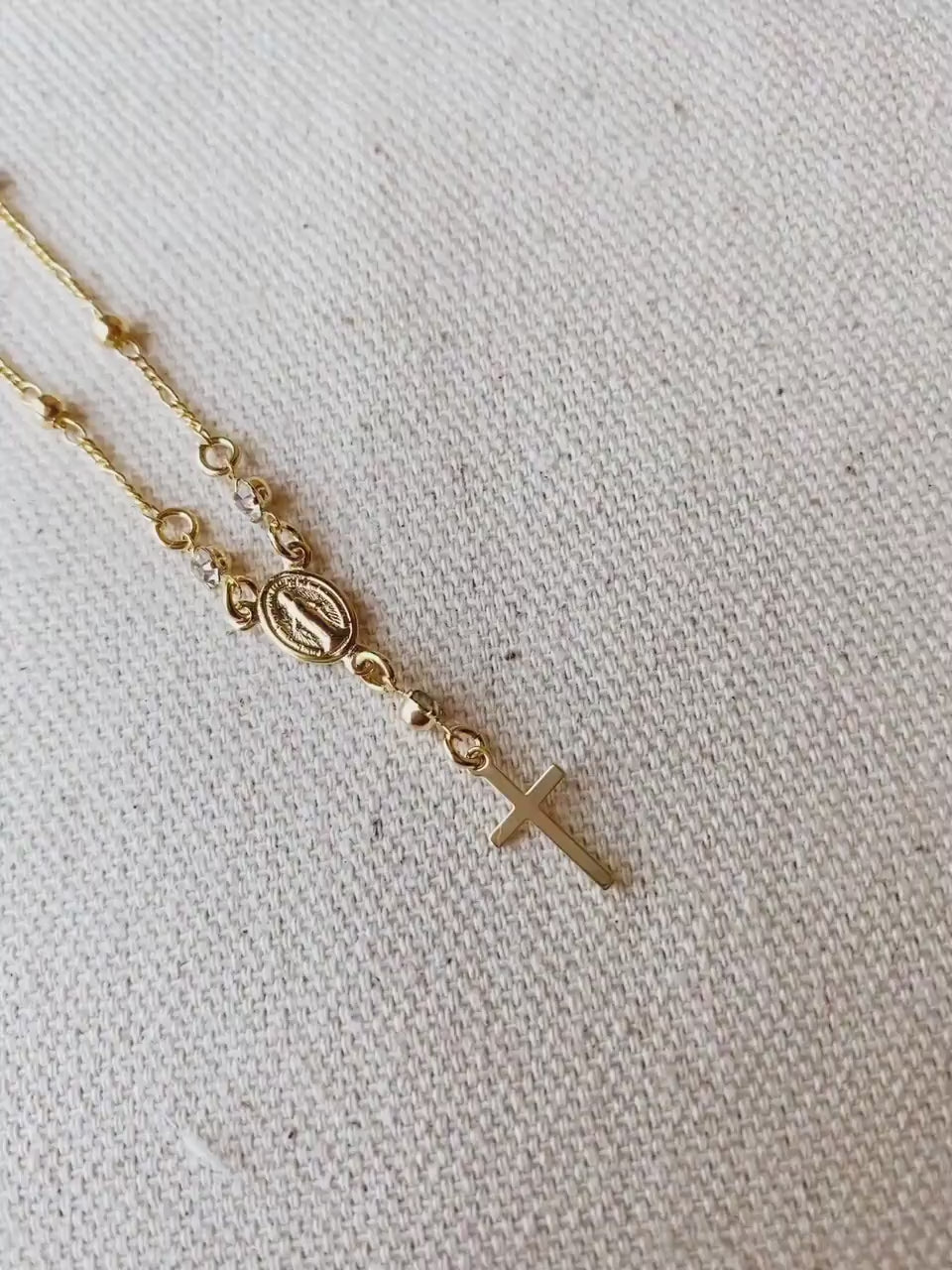 18k Gold Filled Our Lady of Graces Rosary Ball Chain and Small Plain Cross