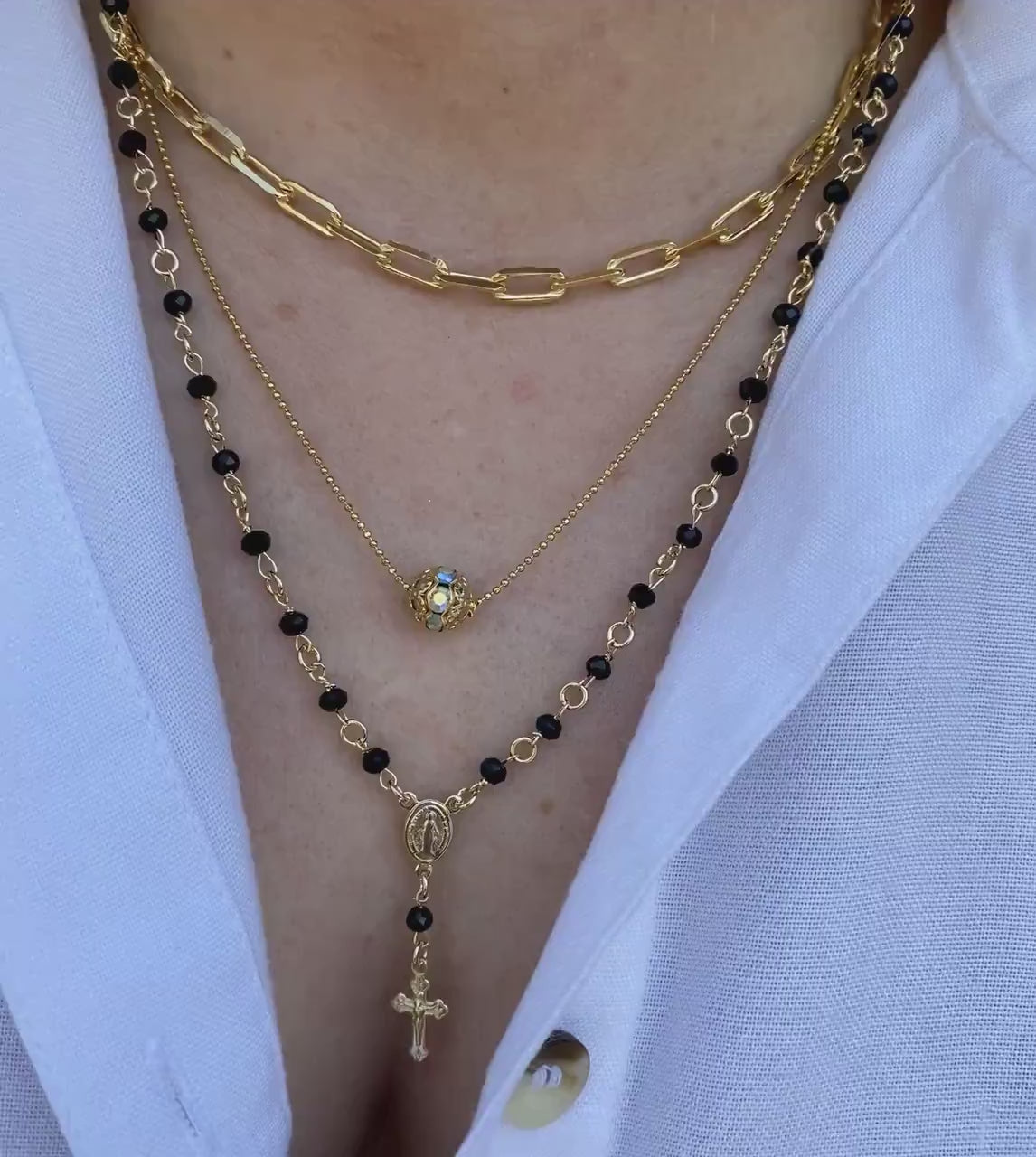 18k Gold Filled Necklace with solitaire bead in a 1 mm diamond cut bead chain.