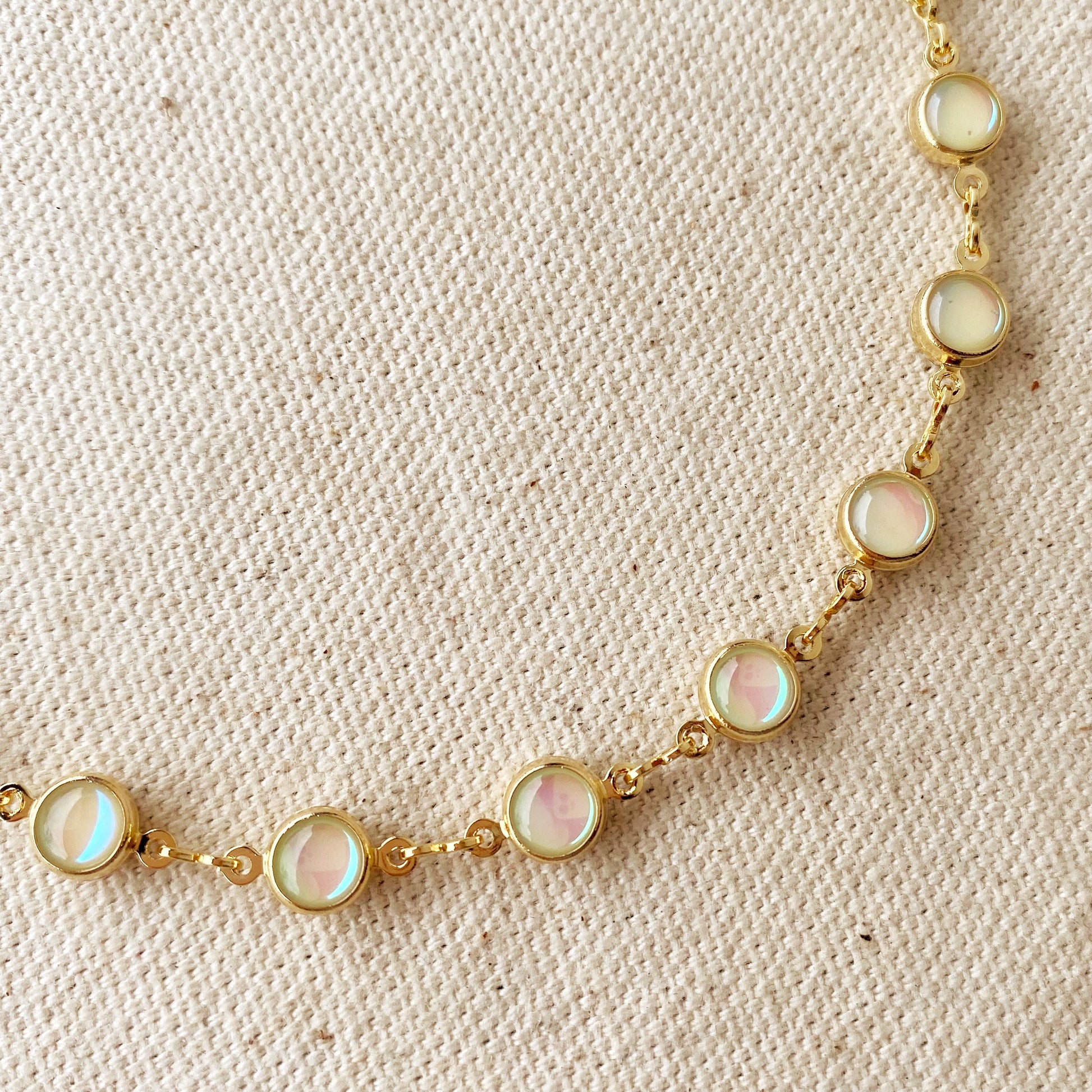 Introducing our gorgeous, 18k gold filled rounded opal choker - perfect for this summer season. Make a statement and look as trendy as ever with this choker that will be sure to turn heads. Embrace the summer with this stunning fashion accessory!