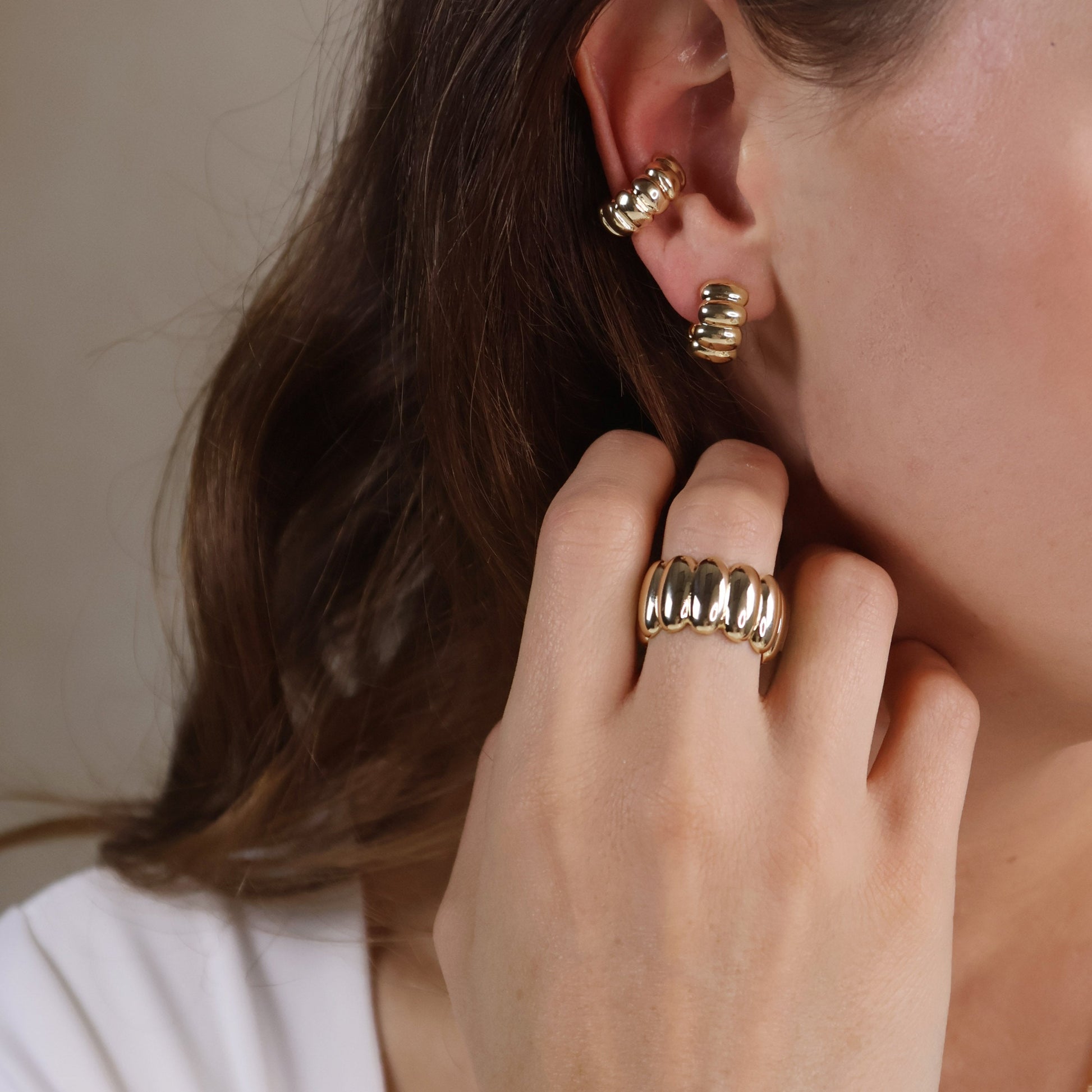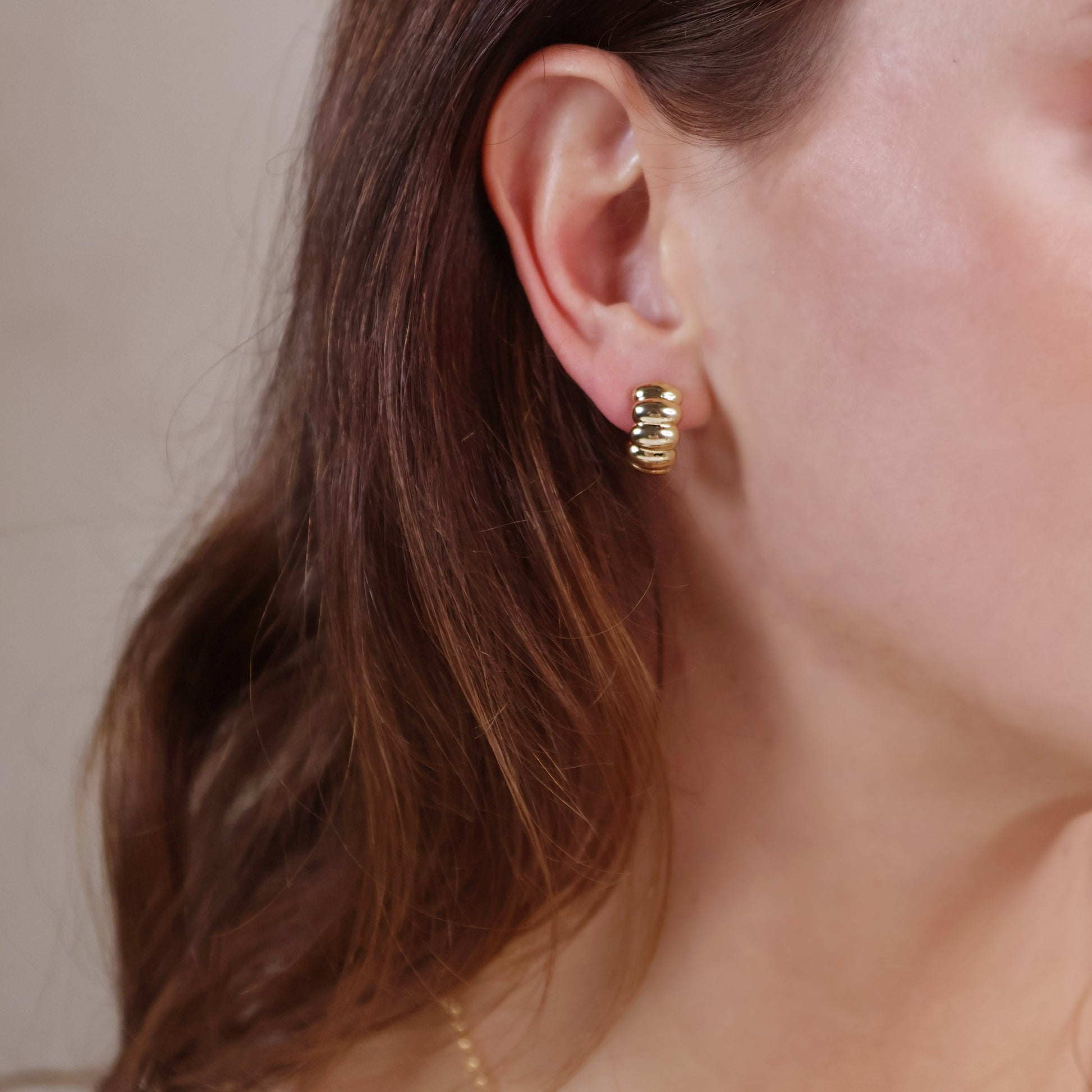 Add a touch of vintage charm with our Scalloped C-Hoop Earrings. These delicately crafted hoops feature an elegant scalloped pattern that catches light beautifully from every angle. The refined C-shape design offers a secure and comfortable fit while providing a timeless look that transitions effortlessly from day to night. Their petite yet distinctive size makes them perfect for everyday wear, adding a subtle statement to any outfit. These versatile earrings blend classic sophistication with romantic details, making them an essential addition to your jewelry collection.
