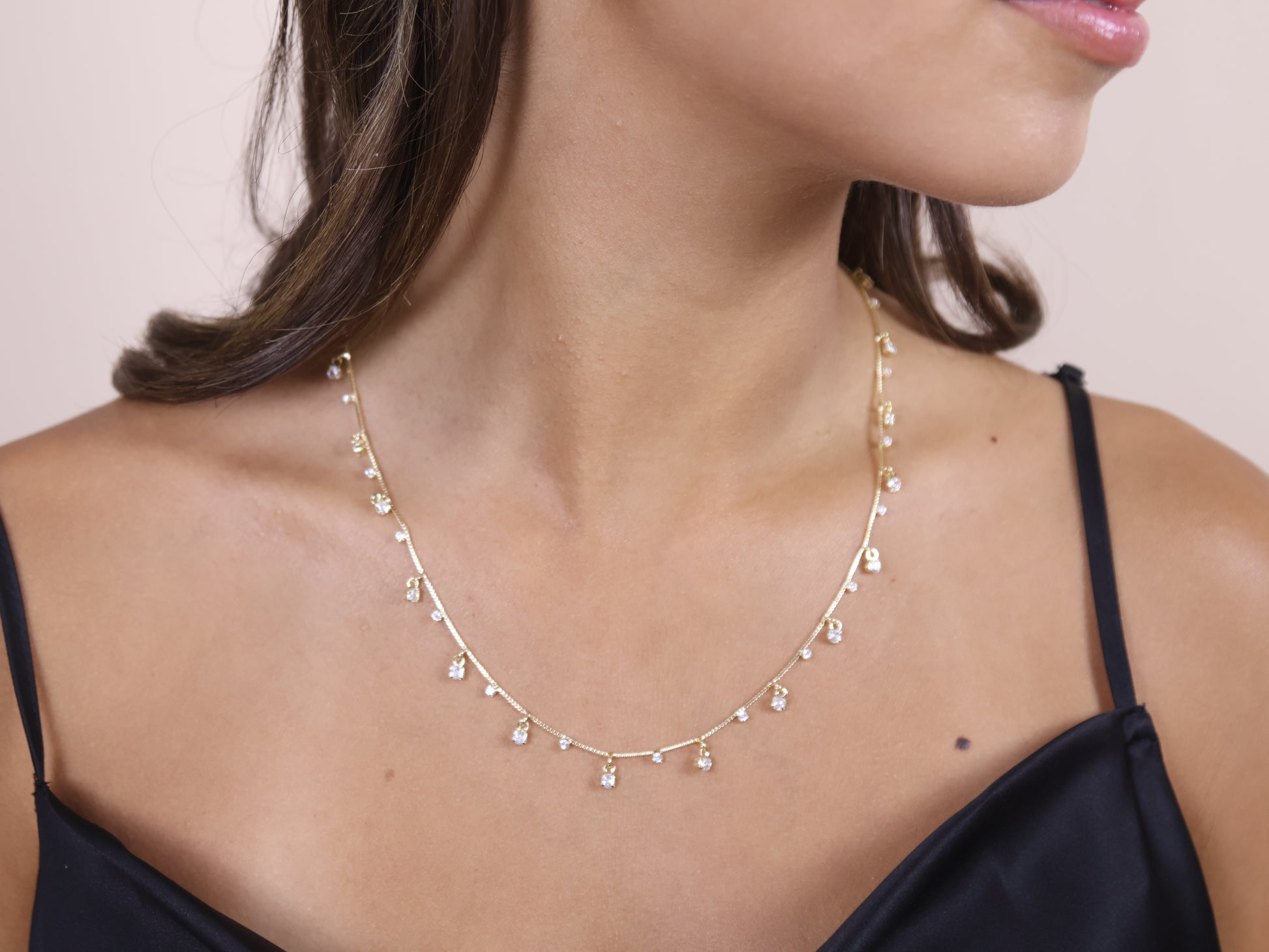 Transform any outfit with this breathtaking 18k gold filled necklace featuring mesmerizing cubic zirconia crystals that catch the light beautifully. Perfect for layering or wearing solo, this versatile piece effortlessly transitions from day to night.