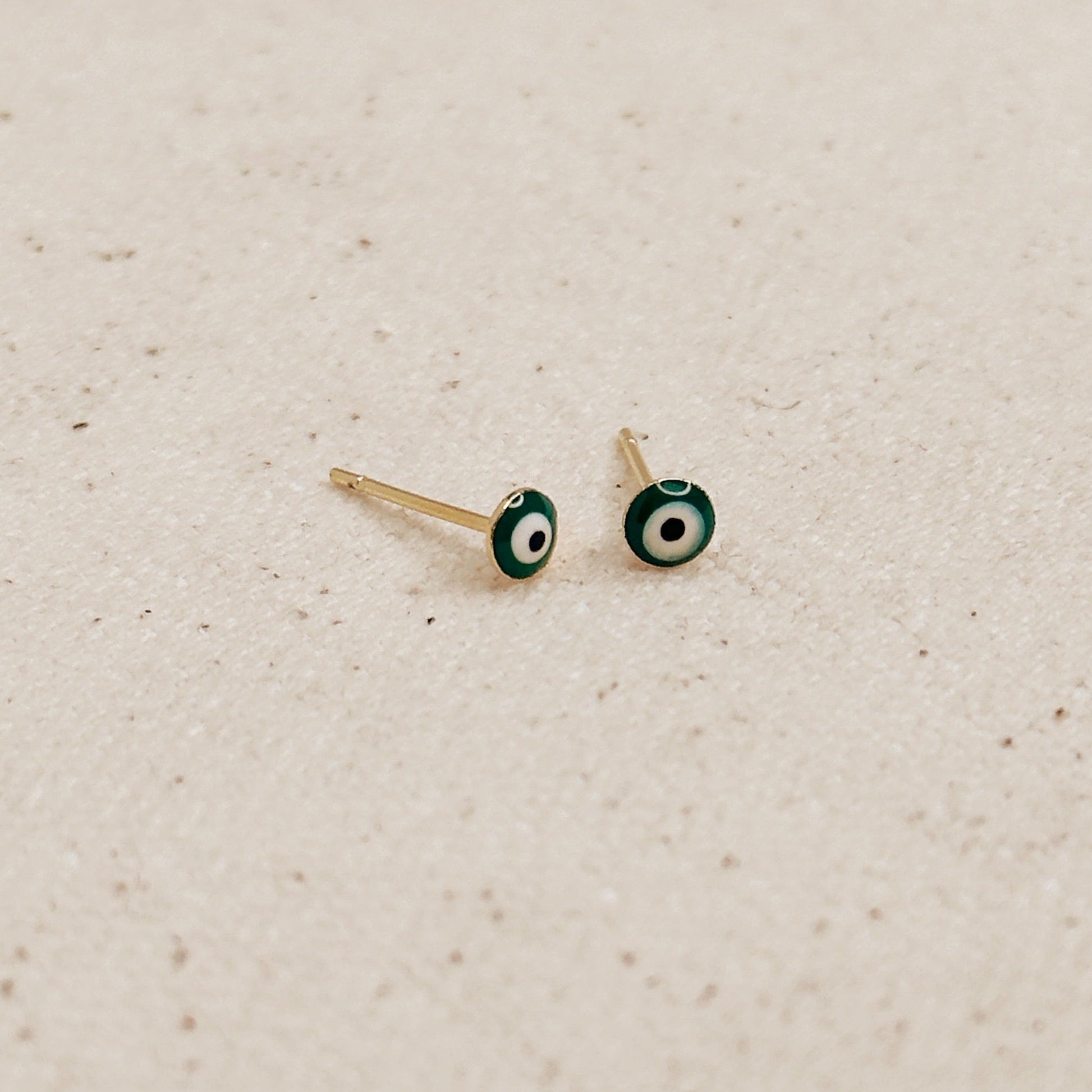 18k Gold Filled Tiny Green Evil Eye Stud Earrings