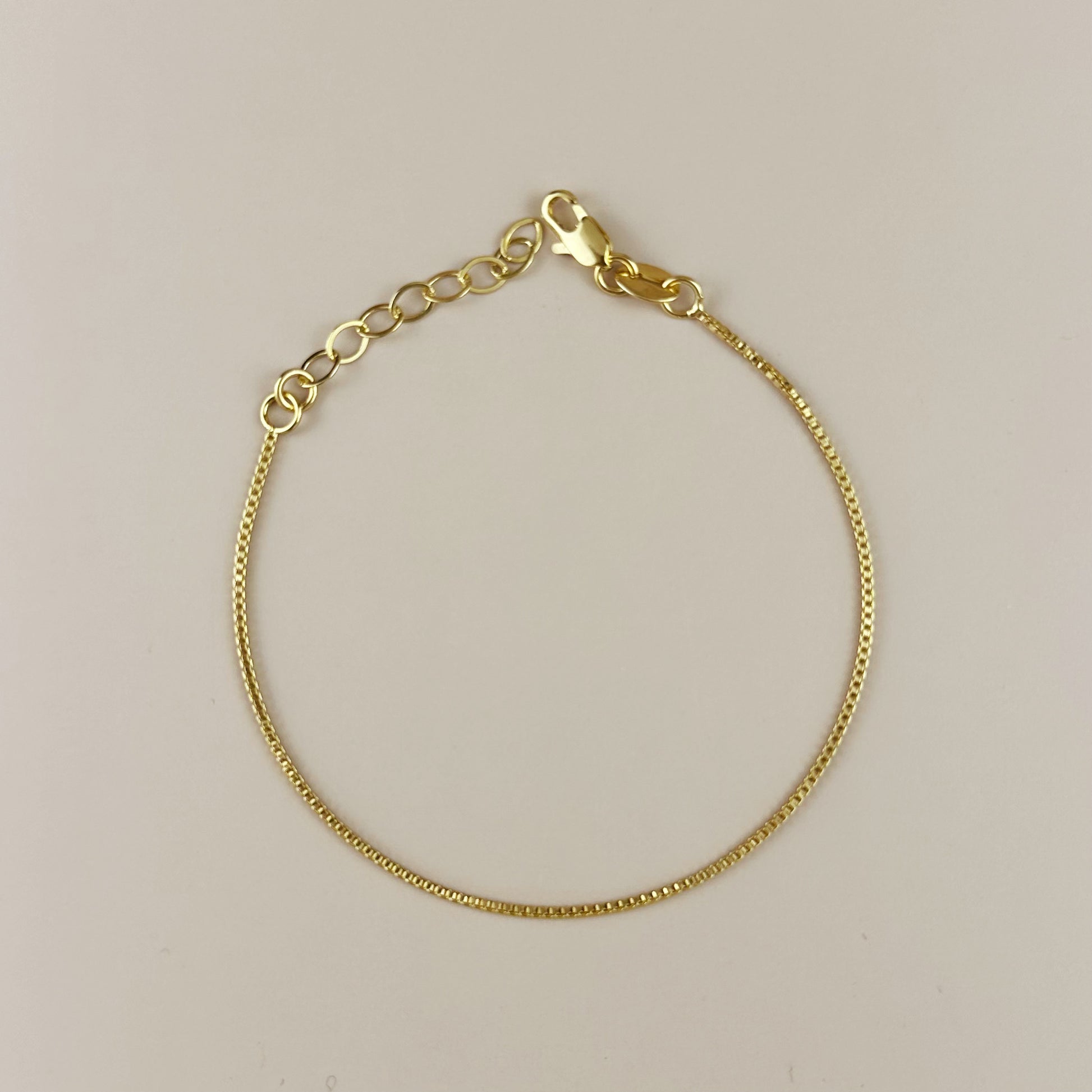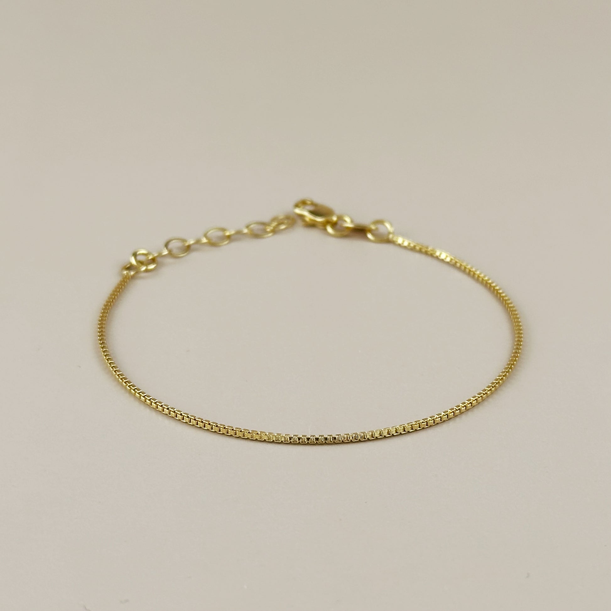 Discover timeless elegance with this ultra-thin 18k gold filled box chain bracelet that effortlessly elevates every look from casual to sophisticated.