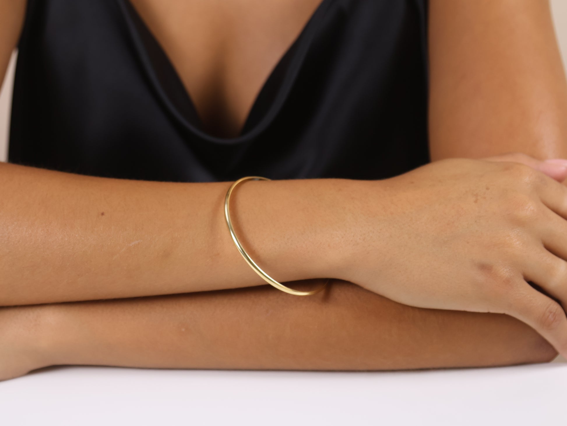 Keywords: 18k gold filled bangle, classic gold bangle bracelet, smooth polished bangle, stackable gold bracelet, hypoallergenic bangle, water resistant jewelry, women's gold bangle, timeless bracelet, elegant bangle bracelet, quality gold jewelry